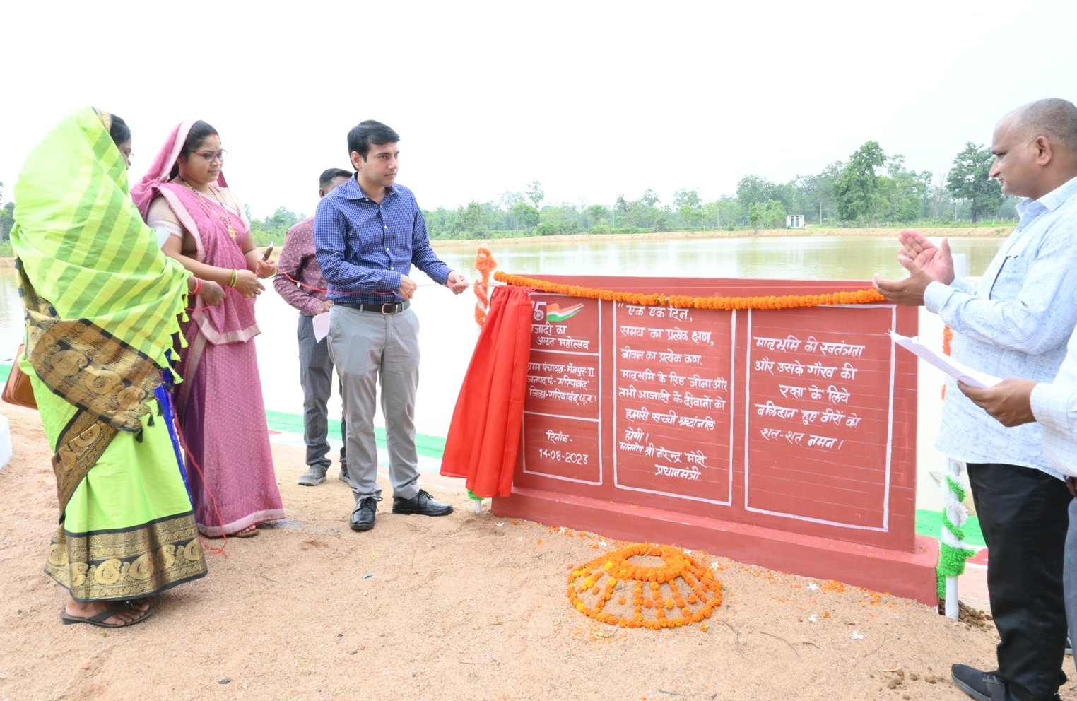 गरियाबंद (गंगा प्रकाश)। देशभर सहित जिले में भी मेरी माटी मेरा देश अभियान की शुरुआत हो गई है। इस अभियान का उद्देश्य उन बहादुर स्वतंत्रता सेनानियों और वीरों का सम्मान करना है, जिन्होंने देश के लिए अपना जीवन बलिदान कर दिया है। कलेक्टर आकाश छिकारा के निर्देशानुसार गरियाबंद जिले में अभियान के तहत वीरों को याद करने के लिए विभिन्न कार्यक्रम आयोजित किये जा रहे है। उनकी स्मृति में जिले के अमृत सरोवरों के निकट पौधरोपण किया जा रहा है। इसी कड़ी में आज गरियाबंद विकासखण्ड के ग्राम कांटीदादर में कलेक्टर श्री आकाश छिकारा एवं जिला पंचायत सीईओ श्रीमती रीता यादव ने मेरी माटी मेरा देश अभियान के तहत अमृत सरोवर का निरीक्षण करने के उपरांत वहां पौधरोपण कर अमृत कलश स्थापित किये। साथ ही शिला पट्टिका का उद्घाटन किया। इस दौरान जनपद अध्यक्ष श्रीमती लालीमा ठाकुर, उपाध्यक्ष प्रवीण यादव, गांव की सरपंच सहित अन्य गणमान्य नागरिक एवं ग्रामीणजन बड़े उत्साह के साथ सरोवर के चारों ओर पौधरोपण किया। इस दौरान कलेक्टर ने आजादी के अमृत महोत्सव के अमृत काल के पंच प्रण के तहत ग्रामीणों को भारत को विकसित देश बनाने, गुलामी की मानसिकता को जड़ से निकाल फेकने, देश की समृद्ध विरासत पर गर्व करने, एकता और एकजुटता के लिए कर्तव्यबद्ध रहने, नागरिक के कर्तव्य निभाने, देश की रक्षा करने वाले का सम्मान करने और भारत को 2047 में विकसित देश बनाने का सपना साकार करने के लिए शपथ दिलाई।