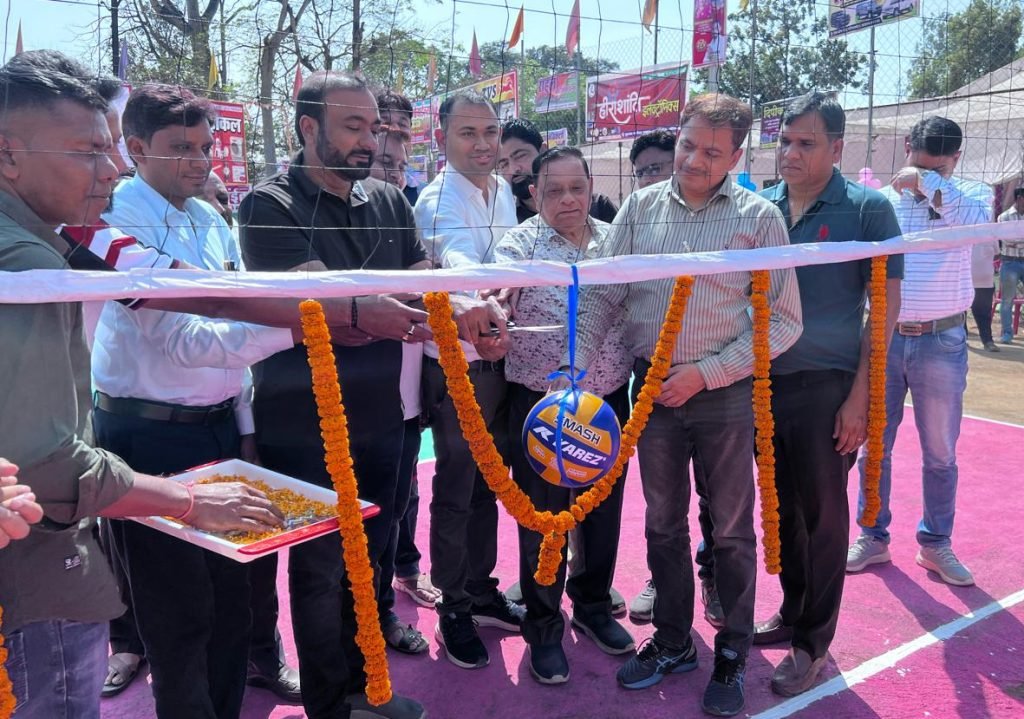 गरियाबंद (गंगा प्रकाश)। नगर के कान्हा कल्ब मैदान में आयोजित दो दिवसीय राज्य स्तरीय वालीबाल प्रतियोगिता का शनिवार को भव्य शुभारंभ हुआ। मुख्य अतिथि अतिरिक्त पुलिस अधीक्षक डीसी पटेल और अपर कलेक्टर अविनाश भोई ने फीता काटकर प्रतियोगिता का शुभारंभ किया। इस अवसर पर विशेष रूप से नगर पालिका अध्यक्ष अब्दुल गफ्फार मेमन, एसडीओपी पुष्पेंद्र नायक, विनय दासवानी, कान्हा क्लब के कोच जीडी उपासने भी उपस्थित थे।