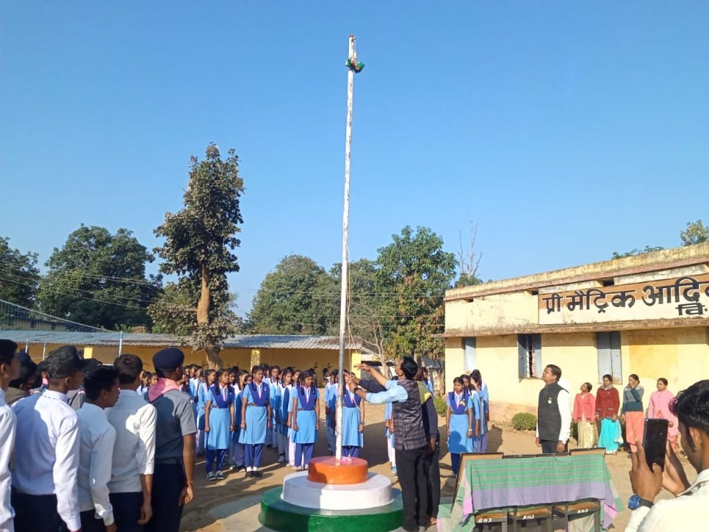 दर्रीपारा (गंगा प्रकाश)। 74 वां गणतंत्र दिवस समारोह दर्रीपारा सहित ग्राम कोसमी,जोबा,भिरालाट, केराबहारा,उर्तुलि,जैतपुरी,आमदी,बोइरगांव,आमागाँव, रावनडिग्गी,चिपरी,सेमरा,पेंड्रा, नवागांव,खरता,अंदोरा, सेम्हरढाप,खुर्सीपार,मोहलाई, देवरीबाहरा,खुटगांव,हसौदा,बिंद्रा नवागढ़,खम्हारीपारा,परियाबहारा, महेंद्रगढ़ में गरिमामय वातावरण में मनाया गया।प्रमुख चौंक चौराहों के अलावा शासकीय संस्थाओं में प्रात: तिरंगा फहराया गया।शासकीय उच्चतर माध्यमिक विद्यालय दर्रीपारा में प्रभारी प्राचार्य डी के ठाकुर,प्री मैट्रिक आदिवासी बालक छात्रावास में अधीक्षक आर एस पैकरा, प्राथमिक शाला तथा पूर्व माध्यमिक शाला दर्रीपारा में पूर्व प्रधान पाठक एम आर सोम,आंगनबाड़ी केंद्र में चम्पा बाई,प्रेम बाई,सरस्वती शिशु मंदिर दर्रीपारा में अध्यक्ष नरसिंग मरकाम,लघु वनोपज तेंदूपत्ता समिति दर्रीपारा में अध्यक्ष राजू लाल ध्रुव,आदिम जाति सेवा सहकारी बैंक दर्रीपारा में अध्यक्ष अशोक कुमार ध्रुव, प्राथमिक स्वास्थ्य केंद्र कोसमी में जनपद सदस्य खिलेश्वरी आयाम,हाईस्कूल आमदी में प्रभारी प्राचार्य आर एन यादव,आदिम जाति सेवा सहकारी बैंक आमदी में उमेश कुमार ध्रुव,ग्राम पंचायत दर्रीपारा में सरपंच सुनीता नेताम,ग्राम पंचायत जोबा में सरपंच मुकेश बिसेन,ग्राम पंचायत बिंद्रानवागढ़ में सरपंच लक्ष्मी ध्रुव,ग्राम पंचायत आमदी में सरपंच छतरानी देवी ध्रुव ने ध्वजारोहण किया।