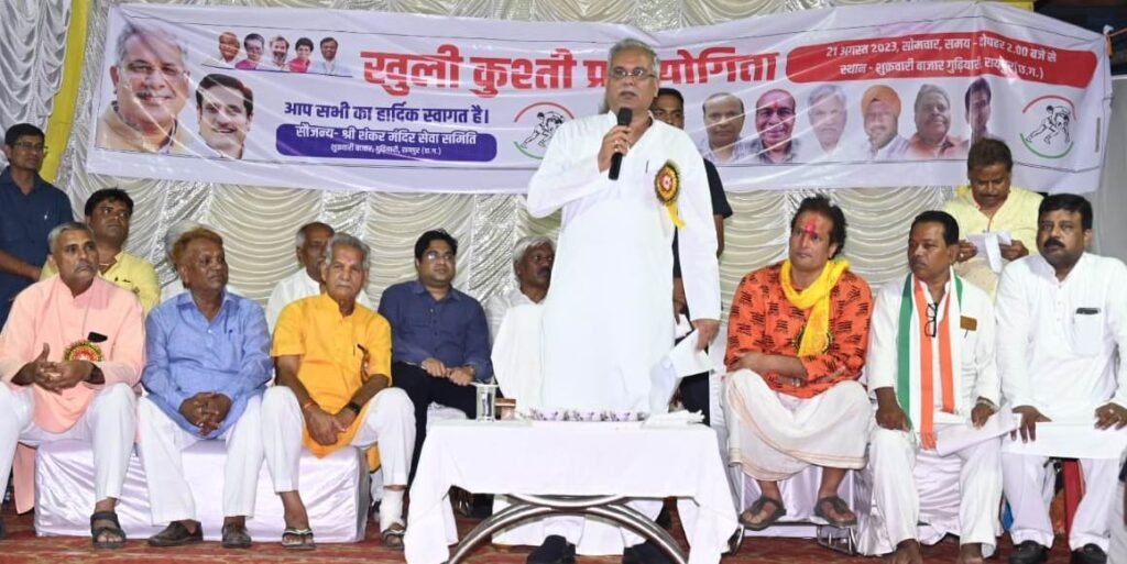 रायपुर(गंगा प्रकाश)।मुख्यमंत्री भूपेश बघेल आज राजधानी रायपुर के गुढ़ियारी में शंकर सेवा समिति द्वारा आयोजित कुश्ती प्रतियोगिता में शामिल हुए। उन्होंने प्रदेशवासियों को नागपंचमी की बधाई और शुभकामनाएं दीं। उन्होंने इस मौके पर राज्य में कुश्ती को बढ़ावा देने के लिए रायपुर में राज्य स्तरीय कुश्ती अकादमी खोलने की घोषणा की। इसके साथ उन्होंने खिलाड़ियों को प्रोत्साहन देने के लिए बजरंगबली अखाड़ा प्रोत्साहन योजना शुरू करने की भी घोषणा की।