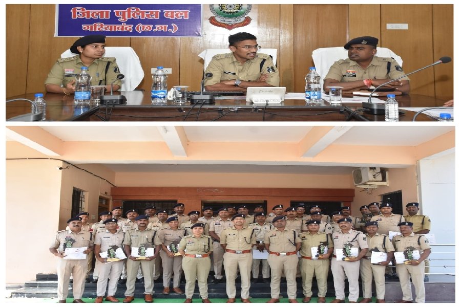 गरियाबंद (गंगा प्रकाश)। आज दिनांक 07.03.2025 को पुलिस अधीक्षक कार्यालय के सभा कक्ष में पुलिस अधीक्षक निखिल राखेचा , अति0 पुलिस अधीक्षक जितेन्द्र चंद्राकर, एस.डी.ओ.पी. गरियाबंद निशा सिन्हा की उपस्थिति में राजिम कुम्भ कल्प मेला एवं नगरीय निकाय, त्रि-स्तरीय पंचायत चुनाव में कड़ी मेहनत एवं लगन के साथ ड्यूटी कार्य करने वाले अधिकारी/कर्मचारियों को पुरस्कृत किया गया।