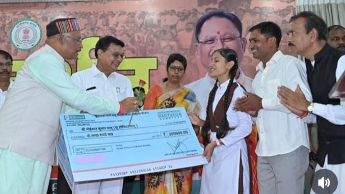 गरियाबंद(गंगा प्रकाश)। इस वर्ष दसवी बोर्ड परीक्षा में मेरिट सूची में अपना दर्ज कराकर जिले का नाम रोशन करने वाली होनहार छात्रा होनिशा साहू अब अपनी खुद की स्कूटी ले सकेंगी। साथ ही प्रशासनिक अधिकारी बनने के अपने सपने को भी पूरा कर सकेंगी। मुख्यमंत्री विष्णु देव साय ने आज अपने निवास में आयोजित जनदर्शन कार्यक्रम में होनिशा को दो लाख रूपये का चेक सौपा। मुख्यमंत्री ने श्रम विभाग की मुख्यमंत्री नोनी बाबू मेधावी शिक्षा सहायता योजना के तहत राज्य के अन्य 12 विद्यार्थियों को दो-दो लाख रुपए के चेक प्रदान किए और उन्हें उज्ज्वल भविष्य के लिए आशीर्वाद प्रदान किया। मुख्यमंत्री के हाथों सम्मानित होने और उन्हें राशि मिलने से होनिशा सहित सभी बच्चे उत्साहित हो गये। उन्हें मिले सम्मान और सहायता राशि से उनका आत्मविश्वास भी बढ़ गया। दसवीं की बोर्ड परीक्षा में दूसरा स्थान प्राप्त करने वाली होनिशा डिप्टी कलेक्टर बनना चाहती हैं। मुख्यमंत्री के हाथों मिले राशि से आगे की पढ़ाई जारी रखकर अपना सपना साकार कर सकेंगी।
