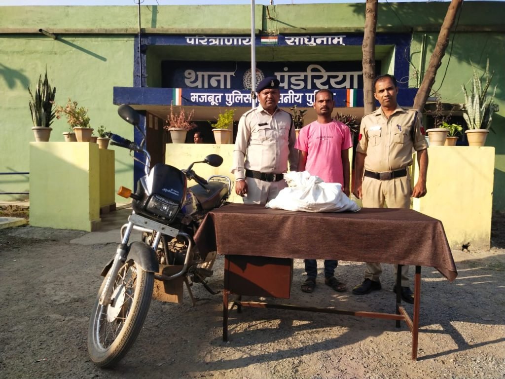 कवर्धा (गंगा प्रकाश)। कबीरधाम पुलिस अधीक्षक डॉ. लाल उमेंद सिंह के निर्देशन एवं अतिरिक्त पुलिस अधीक्षक श्रीमती मनीषा ठाकुर रावटे तथा पुलिस अनुविभागीय अधिकारी पंडरिया पंकज कुमार पटेल द्वारा पंडरिया अनुभाग के समस्त थाना एवं चौकी प्रभारियों को अवैध शराब, जुआ, सट्टा पर प्रभावी कार्यवाही कर अंकुश लगाने हेतु निर्देशित किया गया है। जिस पर पंडरिया अनुविभाग के समस्त थाना/चौकी प्रभारीयों द्वारा अपने क्षेत्र में लगातार सूचना एकत्र की जा रही है इसी तारतम्य में आज दिनांक 02/11/2022 को देहात भ्रमण के दौरान मुखबीर सूचना मिला की पंडातराई का वीरेंद्र जांगड़े अपने मोटरसाइकिल में अवैध रूप से शराब लेकर पंडातराई की ओर जा रहा है,सूचना वरिष्ठ अधिकारीयों को अवगत कराकर तत्काल रौहा दाल मिल पास नाकाबंदी कर एक व्यक्ति को पकड़ा गया जो पूछताछ पर अपना नाम वीरेंद्र जांगड़े पिता ईश्वर जांगड़े उम्र 38 वर्ष पता कोयलारी कापा पंडातराई बताया आरोपी से तलाशी लेने पर सफ़ेद बोरी से 16 पौवा प्लेन शराब एवं गाड़ी की डिक्की से 16 पौवा प्लेन शराब कुल 32 पौवा(5.760 बल्क लीटर) देसी प्लेन शराब बरामद हुआ एवं आरोपी से घटना में प्रयुक्त हीरो स्प्लेंडर मोटरसाइकिल जप्त किया गया..एवं आरोपी के विरुद्ध अपराध क्र.316/22 धारा 32 (2) आबकारी एक्ट पंजीबद्ध कर विवेचना में लिया गया आरोपी के विरुद्ध पर्याप्त साक्ष्य पाए जाने से विधिवत गिरफ्तार कर माननीय न्यायालय पेश किया गया। उक्त कार्यवाही में सउनि. नरेन्द्र सिंह, आर. द्वारिका चंद्रवंशी,राजू चंद्रवंसी का विशेष योगदान रहा।