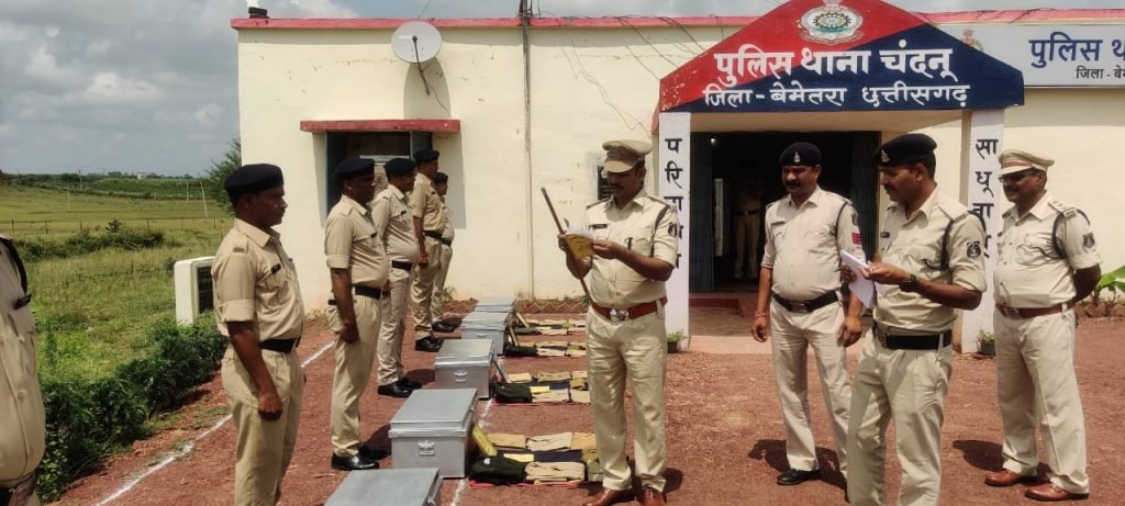 बेमेतरा (गंगा प्रकाश)। पुलिस अधीक्षक बेमेतरा धर्मेन्द्र सिंह के निर्देशन पर अति. पुलिस अधीक्षक पंकज पटेल ने थाना चंदनू का निरीक्षण किया। एएसपी महोदय द्वारा कीट परेड निरीक्षण के दौरान उपस्थित उपस्थित अधिकारी/ कर्मचारियों का मनोबल बढाये जाने के साथ ही कानून व सुरक्षा व्यवस्था को बनाये रखते हुए बेहतर पुलिसिंग के बारे में मार्गदर्शन दिया गया।