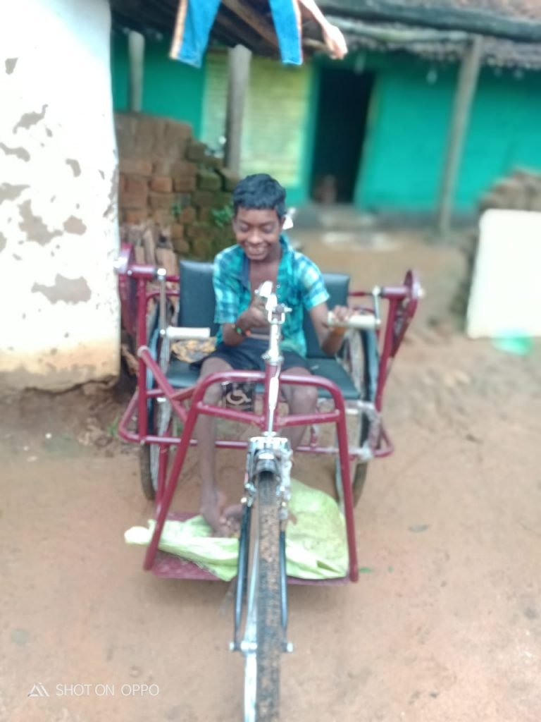 जागरुक युवा के पहल रंग लाई आज ट्राईसाईकिल से चलते हुए दिव्यांग बालक में खुशियां देखते ही बनती है।