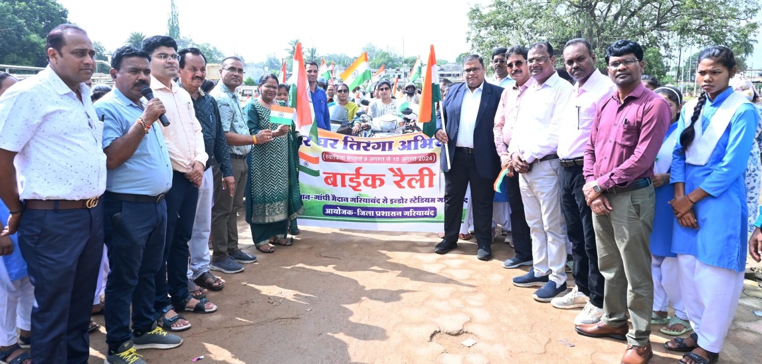 कलेक्टर श्री अग्रवाल ने कहा कि तिरंगा हमारे राष्ट्र का प्रतीक है। भारतीय नागरिकों को अपने घर में राष्ट्रीय ध्वज फहराने के लिए प्रेरित किया जा रहा है, ताकि राष्ट्रीय ध्वज के प्रति सम्मान में वृद्धि हो। उन्होंने कहा कि आज इस तिरंगा बाईक रैली के माध्यम से तिरंगा यात्रा का शुभारंभ किया गया है। आजादी का अमृत महोत्सव अंतर्गत 9 अगस्त से 15 अगस्त 2024 तक आयोजित हर घर तिरंगा कार्यक्रम के तहत जिले में विभिन्न आयोजन किए जाएंगे। उन्होंने सभी से आग्रह करते हुए कहा कि हर घर तिरंगा कार्यक्रम के अंतर्गत 9 से 15 अगस्त तक स्वतंत्रता संग्राम सेनानियों के सम्मान में अपनी सहभागिता निभाएं। इस अवसर पर जिला अधिकारी एवं शिक्षकगण उपस्थित रहे।