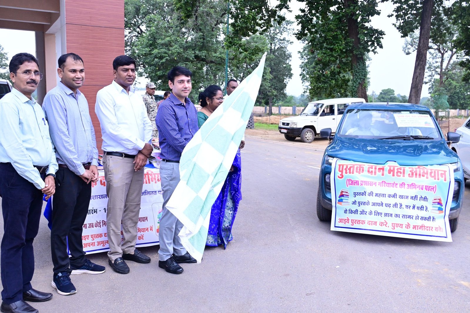 पुस्तक संकलन के लिए वाहन को हरी झंडी दिखाकर किया रवाना