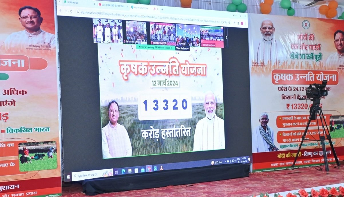 गरियाबंद/छुरा (गंगा प्रकाश)। छत्तीसगढ़ शासन द्वारा कृषक उन्नति योजनान्तर्गत किसानों को खरीफ विपणन वर्ष 2023-24 में 3100 रूपये प्रति क्विंटल की दर से धान का उपार्जन किया गया है। कृषक उन्नति योजना के तहत मुख्यमंत्री विष्णुदेव साय की उपस्थिति में बालोद में आयोजित राज्य स्तरीय कार्यक्रम से राशि का हस्तांतरण किया गया। जिला स्तरीय कार्यक्रम छुरा के सांस्कृतिक भवन में किया गया, जिसमें जिले के 78 हजार 516 किसानों से 48 लाख 36 हजार 204 क्विंटल धान उपार्जन किया गया है। कृषक उन्नति योजना के तहत किसानों को आदान सहायता राशि प्रति एकड़ 19257 रूपये के मान से 443 करोड़ 47 लाख 99 हजार रूपये का भुगतान डीबीटी के माध्यम से मुख्यमंत्री के द्वारा किया गया। कार्यक्रम में कलेक्टर दीपक कुमार अग्रवाल, जनपद अध्यक्ष श्रीमती तोकेश्वरी मांझी, श्रीमती केसरी ध्रुव, रितुराज, श्रीमती शांति नागेश, श्रीमती पुष्पलता सिंह, राजेश साहू सहित अन्य गणमान्य नागरिक उपस्थित थे।