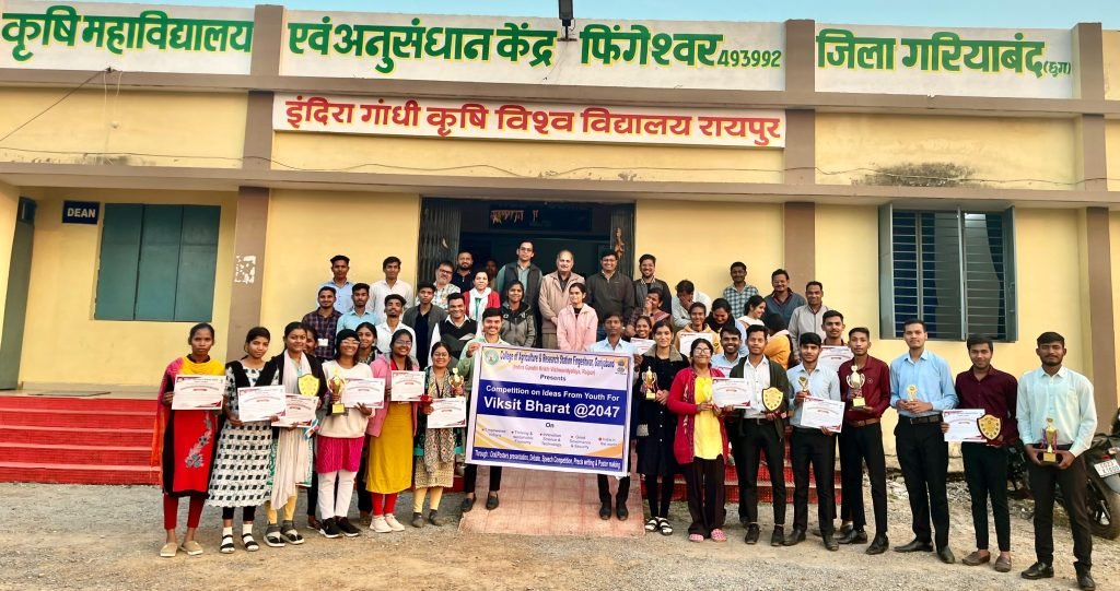 डॉ. गिरीजेश शर्मा, सह प्राध्यापक द्वारा बताया गया की रोडमैप तैयार करने हेतु देश के समस्त विश्व विद्यालय के विद्यार्थियों से पांच विषयो पर सुझाव आमंत्रित किए गए है। जिसमें राष्ट्रीय स्तर पर प्राप्त सुझावों में से श्रेणीवार श्रेष्ठ 3 सुझावों को पुरस्कार स्वरूप 5 लाख, 3 लाख व 2 लाख रूपये की राशि प्रदान की जावेगी। भारत के नागरिक माय डाट जीओवी डाट इन वेबसाइट पर जाकर अपने सुझाव जमा कर सकते है। कार्यक्रम अंतर्गत कृषि महाविद्यालय के विद्यार्थियों हेतु आइडियाज फ्रॉम यूथ फॉर द विज़न विकसित भारत 2047 पर विभिन्न प्रतियोगिताओं जैसे भाषण प्रतियोगिता, वाद विवाद, निबंध लेखन, मौखिक प्रेजेंटेशन, पोस्टर मेकिंग का आयोजन किया गया। प्रत्येक विधा में श्रेष्ठ 3 सुझाव देने वाले छात्र-छात्राओं को पुरस्कार एवं सर्टिफिकेट वितरण किया गया। भाषण में प्रथम पुरस्कार कु. अदिति तिवारी, द्वितीय कु. डोली एवं तृतीय रजक मधुकर, पोस्टर प्रस्तुति में प्रथम पुरस्कार कु. हरदीप कौर, द्वितीय कु. सुचित्रा, तृतीय कु. चेतना, पोस्टर प्रतियोगिता में प्रथम पुरस्कार कु. काजल, द्वितीय कु. नताशा एवं तृतीय कु. पुजा, वाद-विवाद प्रतियोगिता में प्रथम पुरस्कार टेरिस साहू, द्वितीय राजकुमार, तृतीय कु. अदिति, एवं संक्षिप्त विवरण में प्रथम पुरस्कार कु. डोली, द्वितीय महेश्वर, एवं तृतीय कु. अदिति विजेता रही। प्रतियोगिता में श्रेष्ठ सुझावो के चयन हेतु निर्णायक समिति का गठन किया गया था जिसमे डॉ. ओमेश ठाकुर, डॉ. लेखराम वर्मा, डॉ. देवेन्द्र कुमार देवांगन, डॉ. अविनाश गौतम व डॉ. सौरभ पद्मशाली शामिल थे। उक्त कार्यक्रम के दौरान महाविद्यालय से रामचरण साहू, कृष्णकांत रजक, किरण कुमार, जगतारण बंजारे, शशिभूषण बरिहा, कमलेश पैकरा, सुनीता, रेखा सहित समस्त छात्र – छात्राएं उपस्थित रहे।