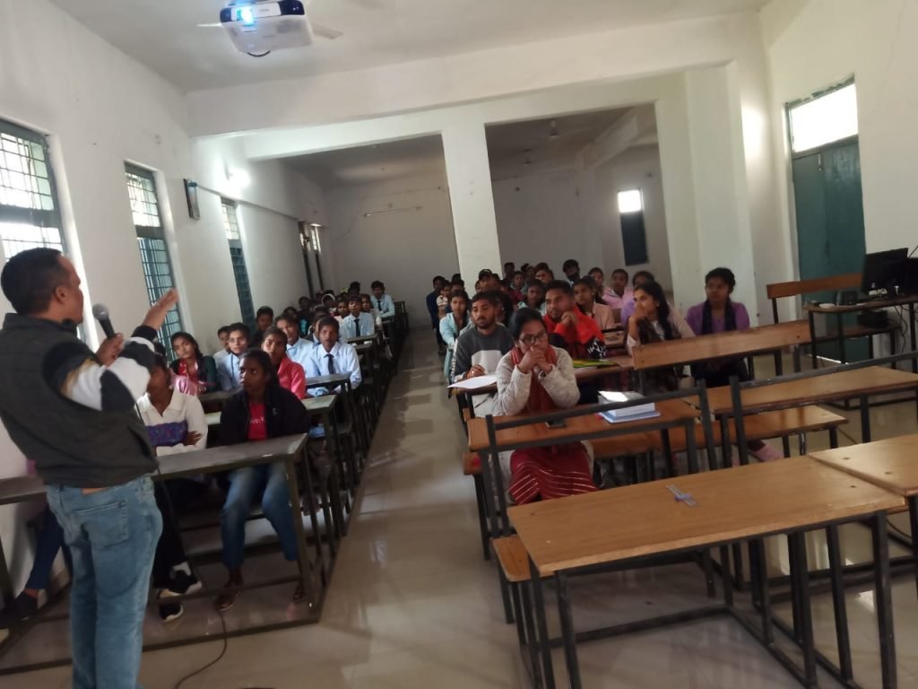 अमित सिंह बनाफर ने छात्रों को राज्य प्रशासनिक सेवा एवं अखिल भारतीय सेवा जैसी प्रतियोगी परीक्षाओं के पाठ्यक्रम एवं परीक्षा प्रणाली के विषय में जानकारी दी। उन्होंने कहा कि इन प्रतियोगी परीक्षाओं में सम्मिलित होने से पूर्व पहले आप अपने आपको मानसिक रूप से तैयार कर ले तथा अनवरत प्रयास करते रहे। सहायक प्राध्यापक श्री भारत लाल कंवर ने बैंकिंग, रेलवे एवं अन्य प्रतियोगी परीक्षाओं के बारे में सामान्य जानकारी दी। उन्होंने बताया कि राष्ट्रीय स्तर पर मुख्य रूप से चार प्रकार की परीक्षाएं होती हैं। यू.पी.एस.सी, एस.एस.सी., आई.बी.पी.एस तथा प्रतिभागी को पहले यह निर्धारित करना चाहिए कि वह किसकी तैयारी करना चाहता है। व्याख्याता श्री जफिर एवं सुश्री नौलू सिंह ने छात्रों को पी.ए.एस.सी के सी सेट पेपर के बारे में विस्तृत जानकारी दी। आई.क्यू.ए.सी प्रभारी श्री अजय कुमार तिवारी ने छात्रों को नेट एवं सेट जैसे राष्ट्रीय एवं राज्य स्तरीय परीक्षा की जानकारी दी और छात्रों को अपने लिए एक निश्चित लक्ष्य बनाने तथा लक्ष्य को पाने के लिए निरंतर प्रयास करते रहने को कहा। उन्होंने कहा कि कई दिशा में भटकने से हमारी ऊर्जा क्षीण हो जाती है तथा किसी एक पर हम केंद्रित नहीं हो पाते। इस तरह हमें सफलता नहीं मिलती।