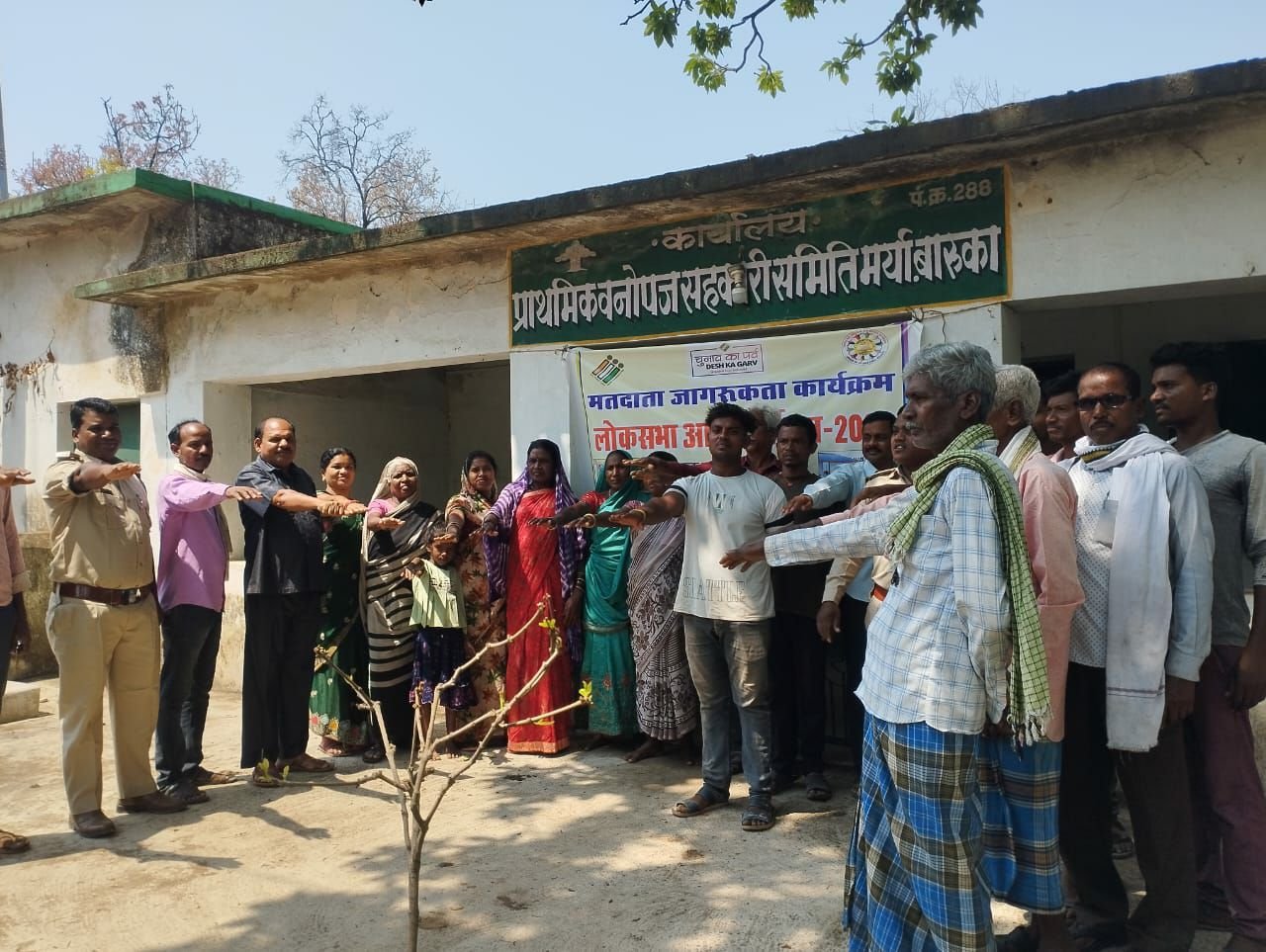 गरियाबंद (गंगा प्रकाश)।  कलेक्टर एवं जिला निर्वाचन अधिकारी दीपक कुमार अग्रवाल एवं वनमण्डलाधिकारी लक्ष्मण सिंह के निर्देशानुसार उप वनमण्डलाधिकारी मनोज चन्द्राकर एवं उप प्रबंध संचालक जिला वनोपज सहकारी संघ मर्यादित अतुल श्रीवास्तव के मार्गदर्शन में गरियाबंद वनमण्डल अंतर्गत मतदाता जागरूकता अभियान चलाया गया। जिसके तहत् गरियाबंद वनमण्डल के 70 प्राथमिक वनोपज सहकारी समितियों में सभा आयोजित कर तेन्दूपत्ता संग्राहकां को मतदान के प्रति जागरूक किया गया। समिति मुख्यालय में तेन्दूपत्ता संग्राहकों को मतदान की शपथ दिलाई गई एवं वोटरों को जागरूक करने के लिए वोटर आईडी कार्ड के साथ सेल्फी ली गई। मतदाता जागरूकता के अभियान में लगभग 7000 संग्राहकों को शपथ दिलाई गई है। इस अवसर पर प्राथमिक वनोपज सहकारी समितियों के अध्यक्ष, संचालक सदस्य, प्रबंधक, एवं पोषक अधिकारी, वन प्रबंधन समिति के सदस्य वन कर्मचारी आदि उपस्थित थे।