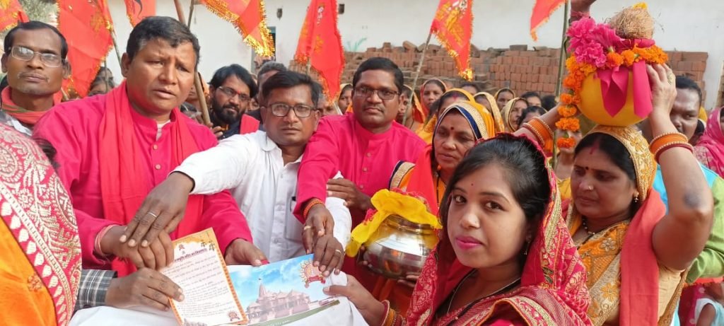 छुरा (गंगा प्रकाश)। भगवान राम की जन्मभूमि अयोध्या से पूरे भारत के गांव-गांव में अक्षत कलश पहुंचायी जा रही है।ग्राम गिधनी में अक्षत कलश पहुंचते ही पटाखे फोडे़ गया।साथ ही ग्राम के हृदय स्थल बजरंग बली मंदिर प्रांगण से पूजा अर्चना कर गाजे बाजे के साथ गाली भ्रमण की लिए शोभायात्रा निकाली गई।पीला चावल के साथ अयोध्या से आए आमंत्रण पत्र को घर-घर दिया गया। 22 जनवरी को अयोध्या में बन रहे भगवान श्री राम मंदिर में प्राण प्रतिष्ठा किया जाना है कलश यात्रा में ग्राम विकास समिति के अध्यक्ष छत्तर सिंह ठाकुर,शिक्षक राधेलाल साहू,प्रेमनारायण ध्रुव,कन्हैया यादव,हेमलाल पटेल,हरिराम साहू,धनीराम ध्रुव,ओंकार सेन,उमान ठाकुर,चिंन्ता राम सागर,देवनाथ ठाकुर,मेहत्तर हीरालाल सेन,तेजनाथ चंद्राकर,कोमल नारायण सेन,भारत ठाकुर,रेवा राम ठाकुर,देवांगन ठाकुर,गोवर्धन ठाकुर,तुलसी ठाकुर,पुनितराम ठाकुर,एवं गांव के नारी शक्ति सहित गांव के छोटे-छोटे बच्चे व गणमान्य नागरिक शामिल हुए।