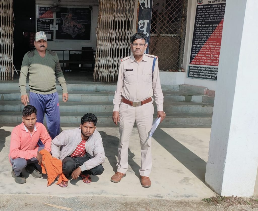 रायगढ़ (गंगा प्रकाश)। एसएसपी सदानंद कुमार के निर्देशन पर फरार आरोपियों की धरपकड़ के क्रम में आज दिनांक 12.12.2023 को लैलूंगा पुलिस द्वारा कार्रवाई करते हुए हत्या के मामले में फरार दो आरोपियो को गिरफ्तार किया है। दोनों आरोपियों की पिछले करीब 15 दिनों से पुलिस तलाश में लगी हुई थी, जिसमें आज आरोपियों के गांव आने की सूचना के आधार पर पुलिस ने छापेमार कार्रवाई कर आरोपियों को पकड़ा गया है। जानकारी के मुताबिक 25 नंवबर को थाना लैलूंगा क्षेत्र अंतर्गत ग्राम सिहारधार में रहने वाले दिनेश गोंड पिता स्व. जलसाय सिदार उम्र 30 वर्ष को उसके परिजन ईलाज के लिये सीएचसी लैलूंगा में लाया गया था जहां उसे डॉक्टर द्वारा चेक कर मृत बताये । संदेहास्पद मर्ग की जांच दौरान मृतक दिनेश गोंड के परिजन बताये कि मृतक दिनेश और उसकी पत्नी लक्ष्मी सिदार की शादी के बाद झगड़ा विवाद होता था । 21 नंवबर को दोनों पति पत्नी के बीच झगड़ा विवाद हुआ तो लक्ष्मी अपने बड़े भाई रहिदास सिदार को कॉल कर ससुराल लेने बुलायी । 22 नवंबर के दोपहर रहिदास सिदार मोटरसाइकिल में अपने दोस्त कृष्णा मांझी के साथ ग्राम सिहारधार आया जिनके साथ मोटर सायकल में मायके जाने लक्ष्मी अपने छोटे बच्चे को लेकर तैयार हो गई तो दिनेश बच्चे को छोड़कर जाओ कहकर मना करने लगा और बच्चे की छीनने लगा । दोनों पति पत्नी के बीच झगड़ा विवाद में रविदास सिदार और उसका दोस्त कृष्णा मांझी द्वारा लक्ष्मी का साथ देने लगे जिनसे दिनेश गोंड झूमाझटकी, करने लगा । इसी बीच रहिदास सिदार सड़क पर पड़े बांस के डंडा से दिनेश के सिर और अन्य जगहों पर मारकर चोट पहुंचाया। दिनेश वहीं बेहोश हो गया था । दिनेश को उसके परिवार वाले लैलूंगा अस्पताल लेकर गए जहां से उसे रायगढ़ रेफर किया गया । रायगढ़ अस्पताल से आहत को और बेहतर इलाज के लिए डीकेएस अस्पताल रायपुर ले जाने की सलाह दिए परिवारजन आहत को लैलूंगा लेकर आ रहे थे । इसी बीच रास्ते में दिनेश बेहोश हो गया जिसे CHC लैलूंगा लेकर गए जहां उसे डॉक्टर ने मृत बताया । घटना को लेकर थाना लैलूंगा में आरोपिया लक्ष्मी सिदार व अन्य के विरूद्ध हत्या का अपराध दर्ज किया गया । दूसरे दिन दिनांक 26.11.2023 को जांच विवेचना दरम्यान आरोपिया लक्ष्मी सिदार (22 वर्ष) को हत्या के अपराध में गिरफ्तार कर रिमांड बाद जेल दाखिल किया गया है । घटना के बाद से दोनों आरोपी फरार थे, जिनकी लैलूंगा पुलिस सरगर्मी से पतासाजी कर रही थी ।