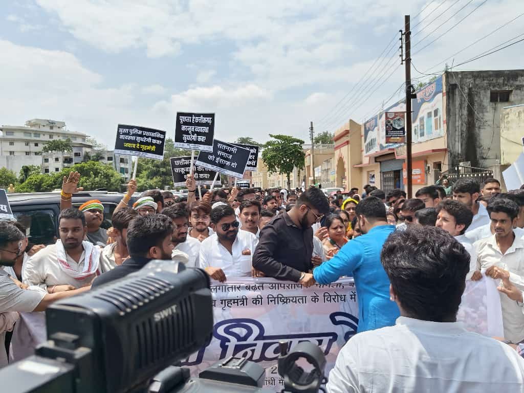 गरियाबंद/फिंगेश्वर (गंगा प्रकाश)। लाचार कानून व्यवस्था के चलते लगातार बढ़ते अपराधिक मामलों और बलौदाबजार हिंसा व फर्जी नक्सली मुठभेड़ जैसे मुद्दों के विरोध में आज युवा कांग्रेस के प्रदेश अध्यक्ष आकाश शर्मा व एनएसयूआई प्रदेश अध्यक्ष नीरज पांडे के नेतृत्व में युवा कांग्रेस, एनएसयूआई और महिला कांग्रेस ने संयुक्त रूप से गृहमंत्री निवास का घेराव कर गृहमंत्री विजय शर्मा से इस्तीफा मांगा। इस विरोध प्रदर्शन में युवा कांग्रेस राजिम विधानसभा अध्यक्ष योगेश साहू अपने कार्यकर्ताओ के साथ रायपुर पहुंचकर गृहमंत्री निवास घेराव कार्यक्रम में शामिल हुए। युवा कांग्रेस विधानसभा अध्यक्ष योगेश साहू ने कहा कि विष्णुदेव साय सरकार के अभी महज कुछ ही महीने पूरे हुए और अभी से ही प्रदेश में अपराधिक गतिविधियां बढ़नी शुरू हो गई है, महिला उत्पीडन जैसे मामले लगातार सामने आ रहे हैं, चोरी-लूट और हत्याएं जैसे अपराध आम हो गए हैं जिसका सबसे मुख्य कारण लाचार कानून व्यवस्था और कानून व्यवस्था में खामियां हैं, भाजपा शासन में कानून व्यवस्था की हालत खस्ता है, इसने वर्षों में आज पहली बार प्रदेश हिंसा की आग में झुलस रहा है जिसका कारण केवल गृहमंत्री की निष्क्रियता है, बलौदाबाजार में हुई हिंसा इसी निष्क्रियता का परिणाम है, सतनामी समाज के धार्मिक स्थलों को खंडित कर लगातार उनकी आस्था पर चोट पहुंचाया जा रहा था जिसे देखते और सुनते हुए भी ये भाजपा सरकार चुप्पी साधे बैठी रही, ऐसी असंवेदनशील सरकार को नींद से जगाना ही पड़ेगा। अभी कुछ दिनों पहले पीडिया के जंगल में भी निर्दोष आदिवासियों को नक्सली बताकर मौत के घाट उतार दिया है, जिससे स्थानीय ग्रामीणों के साथ-साथ आदिवासी समाज के लोगों काफी आक्रोश है, एक आदिवासी मुख्यमंत्री के होते हुए छत्तीसगढ़ के आदिवासी सुरक्षित नहीं है और उन्हें फर्जी एनकाउंटर कर सरकार उनको शिकार बना रही है। आज संपूर्ण छत्तीसगढ़ के साथ-साथ शहर के कानून और व्यवस्था पूरी तरह लड़खड़ा गई है यदि गृहमंत्री राज्य में कानून और व्यसस्था बनाने में सक्षम नहीं है तो वे अपने पद से इस्तीफा दे। श्री योगेश साहू ने आगे कहा कि प्रदेश में दुरुस्त कानून व्यवस्था और और साय सरकार के निष्क्रिय गृहमंत्री विजय शर्मा के इस्तीफे की मांग को लेकर हमने उनके निवास का घेराव किया था पर इस तानाशाही भाजपा सरकार ने हमें रोकने के लिए पुलिस बल का प्रयोग किया और हम लोगों पर बर्बरतापूर्वक लाठीचार्ज कर गिरफ्तारी की गई पर ये भाजपा सरकार समझ ले कि कांग्रेस का कार्यकर्ता भाजपा सरकार की इस तानाशाही से डरने वाले नही है हम लगातार प्रदेश के मुद्दे पूरी मुखरता से उठाते रहेंगे और जनता की आवाज बनकर उनके हकों की लडाई लड़ते रहेंगे इस घेराव में