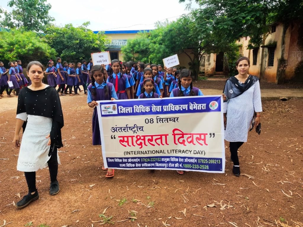 बेमेतरा (गंगा प्रकाश)। -जिला विधिक सेवा प्राधिकरण (डालसा) के पदेन अध्यक्ष जिला न्यायाधीश जयदीप विजय निमोणकर के निर्देशन में नालसा के स्टेेट प्लान ऑफ एक्शन के तहत विश्व साक्षरता दिवस के अवसर पर जिला विधिक सेवा प्राधिकरण के पैरालीगल वालिंटियर्स सुश्री सोनिया सिंह, कुु. प्राची तिवारी द्वारा किशोर न्याय बोर्ड बेमेतरा, शा. पूर्व मा. वि. जेवरा, गुनरबोड़ में विधिक जागरूकता शिविर का आयोजन कर ’’विश्व साक्षरता दिवस’’ के संबंध मंे छात्र-छात्राओं की रैली निकाल कर निःशुल्क विधिक सहायता के बारे में जानकारी प्रदान करते हुये बताया गया कि इस आधुनिक युग में साक्षरता का महत्वपूर्ण स्थान है, साक्षर होकर ही हम अपने जीवन में सही निर्णय लेने हेतु सबल होते है, प्रत्येक व्यक्ति को साक्षरता हेतु प्रेरित रहने संदेश देते हुये विभिन्न कानून के बारे मंे जानकारी दी गई। साथ ही अभियान ’’प्रबंधन’’ पर्यावरण संरक्षण के संबंध में उपयोगी कानून की जानकारी प्रदान की गई। उक्त अवसर पर उपस्थित छात्र-छात्राओं एवं आमजनों को ’’सॉलिड वेस्ट मैनेजमेंट’’ के तहत कचरा प्रबंधन, सुखा कचरा एवं गिला कचरा के प्रकार को अलग अलग कर उन्हें रिसायकल करके पर्यावरण को स्वच्छ एवं सुरक्षित रखने हेतु प्रेरित किया गया। पर्यावरण संरक्षण के संबंध में विभिन्न उपयोगी कानून पर्यावरण संरक्षण अधिनियम 1986, जल प्रदुषण निवारण तथा नियंत्रण अधिनियम 1974, वायु प्रदुषण निवारण और नियंत्रण अधिनियम 1981 के संबंध में जानकारी दी। साथ ही उक्त शिविर में बाल विवाह प्रतिषेध अधिनियम, बालकों का संरक्षण अधिनियम, चाईल्ड ट्रैफिकिंग , नालसा हेल्पलाई 15100, चाईल्ड हेल्पलाईन 1098, शिक्षा का अधिकार, कार्य स्थल पर महिलाओं का उत्पीड़न, बाल श्रम एवं नशा मुक्ति व महिला एवं बच्चों के तस्करी के संबंध में विभिन्न कानूनों की जानकारी प्रदान की गई।