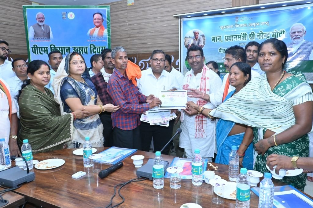 विधायक रोहित साहू ने किसानों को पीएम किसान सम्मान निधि का प्रमाण पत्र सौंपा