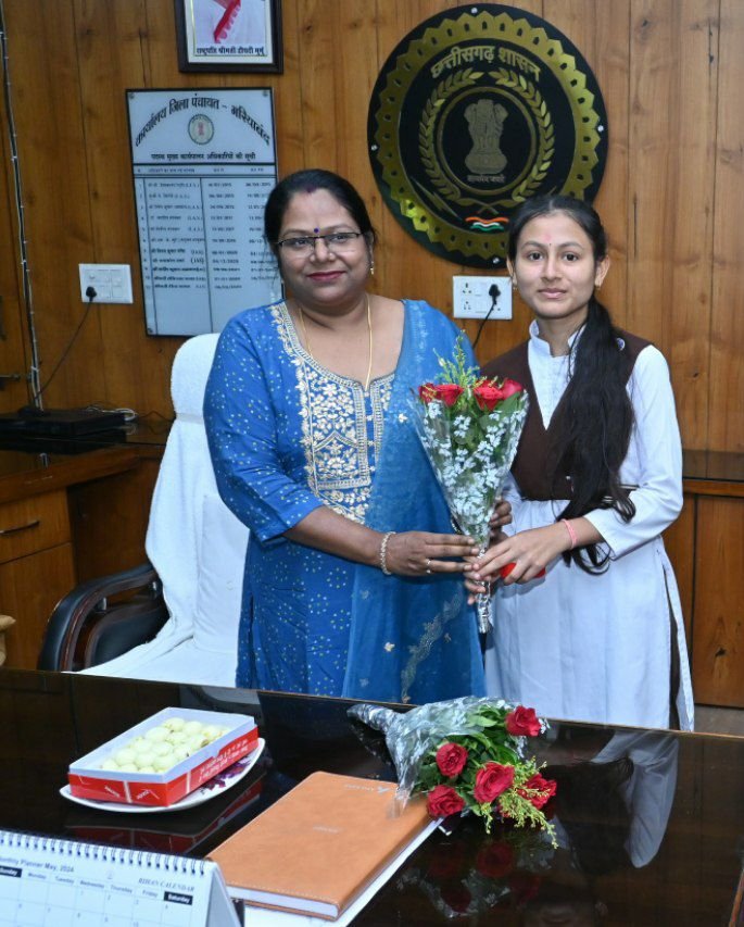 गरियाबंद(गंगा प्रकाश)। दृढ़ निश्चय, आत्मविश्वास, मेहनत और लगन के साथ किए जाने वाले कार्यों में निश्चित ही सफलता मिलती है। इसका साक्षात उदाहरण आदिवासी और वनांचल बहुल गरियाबंद जिले की बेटी होनिशा साहू ने प्रस्तुत किया है। आज छत्तीसगढ़ माध्यमिक शिक्षा मंडल द्वारा जारी कक्षा 10 वीं के परीक्षा परिणाम में कोपरा के सरस्वती शिशु मंदिर की छात्रा होनिशा ने मेरिट सूची में जगह बनाई है। उन्होंने 98.83 प्रतिशत अंक हासिल कर प्रदेश की मेरिट सूची में दूसरा स्थान हासिल किया है। डिप्टी कलेक्टर बनने के सपने संजोए होनिशा ने कड़ी मेहनत और लगन से पढ़ाई करते हुए यह सफलता हासिल की है। साथ ही मेरिट में जगह बनाकर जिले का भी नाम रौशन किया है। जिला पंचायत सीईओ श्रीमती रीता यादव ने होनिशा और उनके माता पिता को पुष्प गुच्छ भेंटकर इस सफलता के लिए बधाई दी। उन्होंने कहा कि लगातार मेहनत के अच्छे परिणाम आते है। दृढ़ निश्चय से किया गया काम निश्चित ही सफलता दिलाते है। इन्ही का परिणाम हम सबके सामने है। उन्होंने होनिशा को निरंतर आगे बढ़ने के लिए प्रेरित किया।