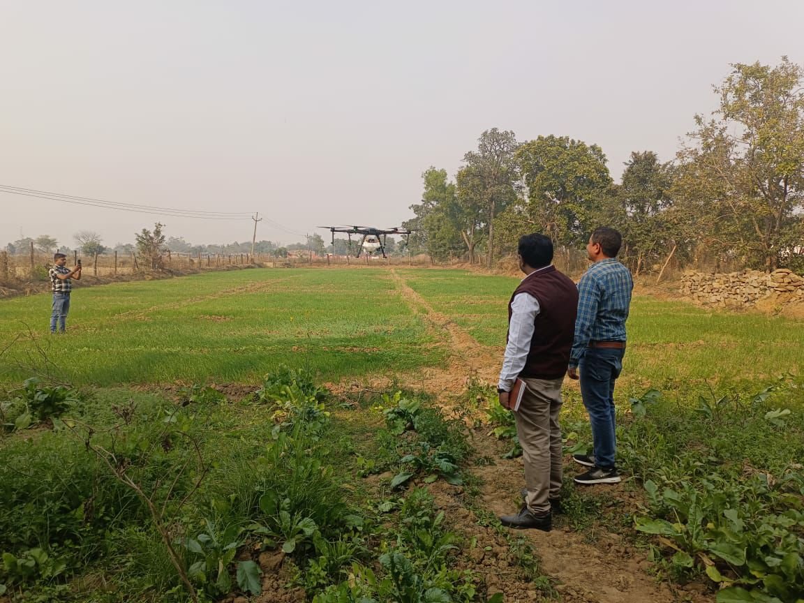 गरियाबंद/फिंगेश्वर (गंगा प्रकाश)। विकासखंड में विकसित भरत संकल्प यात्रा के माध्यम से ग्राम स्तर पर किसानों को विभिन्न योजनाओं से लाभान्वित किया जा रहा है। इसी आयोजित कार्यक्रम के तहत कलेक्टर आकाश छिकारा के मार्गदर्शन में विकासखंड के ग्रामों में ड्रोन के माध्यम से फसल में नैनो यूरिया छिड़काव करके नवीन तकनीक से प्रदर्शन किया गया। संकल्प यात्रा के दौरान अनेक ग्राम के कृषकों के खेत में लगी फसल में यूरिया घोल का छिड़काव करके नवीन तकनीक से किसानों को उपयोग करके दिखाया गया। कार्यक्रम में ड्रोन से उर्वरक छिड़काव आकर्षण केन्द्र बना रहा जिसे देखने के लिए बड़ी संख्या में किसान उपस्थित रहे है तथा नवीन तकनीक उपयोग को किसानों ने सराहा। कृषि अधिकारियों द्वारा बताया गया कि फसल में नैनो यूरिया उपयोग एवं ड्रोन से छिड़काव बहुत उपयोगी है जिससे कम मात्रा, कम समय, कम लागत में उर्वरक का छिड़काव फसलों में आसानी से किया जा सकता है। ड्रोन के माध्यम से महज कुछ ही मिनटों में एक एकड़ खेत में छिड़काव करने के लिए सरल एवं उपयोगी है। ड्रोन से कीटनाशक, तरल उर्वरक, फफूंद नाशक एवं अन्य तरल का छिड़काव करने के लिए उपयोगी है तरल उर्वरकों का फसलों में छिड़काव करने से किसान अपनी फसलों की उत्पादन एवं पैदावार बढ़ा सकते है। जनपद पंचायत फिंगेश्वर के सीईओ अजय पटेल ने कहा कि यह ड्रोन का प्रदर्शन विकासखंड के पूरे ग्राम पंचायतों में किया जाएगा तथा इसके उपयोग से किसानों को अवगत कराया जाएगा।