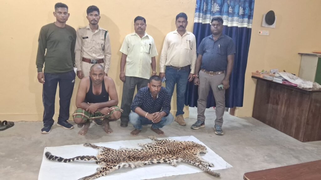 सूचना पर तत्काल उदंती सीतानदी टाईगर रिजर्व गरियाबंद की गठित एन्टी पोचिंग टीम और गरियाबंद जिला पुलिस साइबर सेल के समन्वय से टीम तेतलखुंटी गोहरापदर मार्ग पर शाम 7 बजे पहुंची। संदिग्ध 6-7 व्यक्ति मोटर सायकल पर बोरी में कुछ रखे हुये थे एवं टीम को देखकर वापस उड़ीसा की ओर भागने लगे। टीम उनके पीछा करते हुये सीनापाली होते हुये बोडेन से आगे मेन रोड़ में देर रात एक व्यक्ति कंदर्प राणा पिता भिकारी राणा निवासी नुवापाडा (उड़ीसा) को एक नग तेन्दुआ के खाल (सिर से पुछ की लम्बाई 2 मी चौड़ा 0.26 मी पुंछ की लम्बाई 70 से भी चारो पर सलामत तीर से मारने का निशान 4 सेमी लंबा ) और दो नग मोटरसायकल के साथ पकड़ा गया । कंदर्प राणा की शिनाख्त पर इनके अन्य 05 साथियों का भी तस्करी एवं खरीदी-बिक्री करने में संलिप्त होना बताया गया, जो फरार हो गये हैं जिसकी खोजबीन की जा रही है। इसी दरमियान में दिनांक 07 अक्टुबर 2023 की सुबह दुसरा आरोपी मोहन व हलघर जाति बंजारा ग्राम ब्रम्हणीगुडा (उड़ीसा) को एन्टी पोचिंग टीम एवं उड़न दस्ता टीम द्वारा पकड़ा गया जबकि बाकी आरोपी मौके से फरार पाए गये जिसकी सूचना परिवार वनमंडल अधिकारी (ओडिशा) को दी गयी। पकड़े गये आरोपी कंदर्प राणा व मिकारी राणा नुवापाडा (उड़ीसा) एंव मोहन व हलधर जाति- बंजारा ग्राम- ब्रम्हणीगुडा (उड़ीसा) को ब्रोडेन पुलिस थाने में सूचना देकर पूछताछ करने के लिए वन परिक्षेत्र कार्यालय इंदागांव (ध्रर्वागुड़ी) बफर लाया गया। अपराध कबूल करने पर उनके विरूद्ध वन अपराध पी.ओ.आर. के 179/04 दिनांक 07.10.2023 पंजीबद्ध कर आज दिनांक 07.10.2023 को विवेचना वन परिक्षेत्र अधिकारी इदागांव चन्द्रबली ध्रुव, उपवनक्षेत्रपाल परिक्षेत्र अधिकारी इंदागाव (ध्रुर्वा गुड़ी) बफर के द्वारा गिरफ्तार कर माननीय न्यायिक दण्डाधिकरी प्रथम श्रेणी देवभोग के समक्ष प्रस्तुत करने की कार्यवाही की जा रही है। इस कार्यवाही में उदंती सीतानदी टाईगर रिजर्व गरियाबंद (छ.ग.) के एन्टी पोचिंग टीम के सदस्यों एवं छत्तीसगढ़ राज्य स्तरीय उड़न दस्ता प्रभारी संदीप सिंह रायपुर तथा गरियाबंद जिला पुलिस साइबर सेल प्रभारी सतीश यादव का विशेष योगदान रहा। उदंती सीतानदी टाईगर रिजर्व के उपनिदेशक वरूण जैन ने चर्चा में बताया कि बरामद किये गये तेन्दुआ का खाल से तेन्दुआ की उम्र 07 से 08 वर्ष की लग रही है और उंदती सीतानदी या फिर ओडिसा के सोनाबेडा जंगल से शिकार किया गया है इसकी जांच किया जा रहा है।