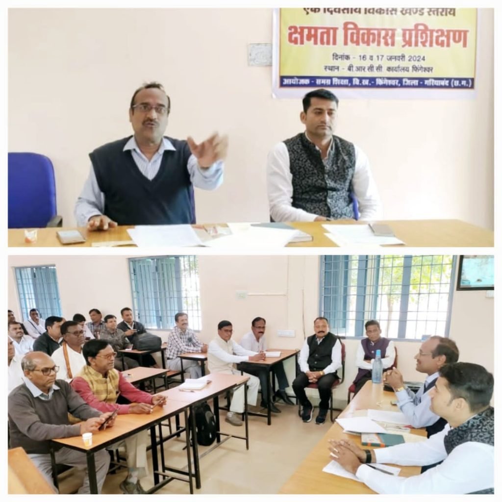 गरियाबंद/फिंगेश्वर(गंगा प्रकाश)। विकासखंड स्रोत समन्वयक केंद्र फिंगेश्वर में विकासखंड शिक्षा अधिकारी रामेंद्र कुमार जोशी एवं टिकेंद्र कुमार यदु विकासखंड स्रोत समन्वयक द्वारा संकुल प्राचार्यो एवं समन्वयकों की आवश्यक बैठक ली गई इस बैठक में विकासखंड शिक्षा अधिकारी एवं विकासखंड स्त्रोत समन्वयक द्वारा परीक्षा पे चर्चा कार्यक्रम हेतु दिशा निर्देश जारी करते हुए जानकारी देते हुए कहा कि माननीय प्रधानमंत्री महोदय द्वारा प्रतिवर्षानुसार इस वर्ष भी विद्यार्थियों शिक्षकों अभिभावकों के साथ परीक्षा को उत्सव की तरह मनाने व विद्यार्थियों में तनाव को दूर करने के लिए सीधा संवाद किया जाएगा परीक्षा पर चर्चा 2024 कार्यक्रम 29 जनवरी को प्रातः 11रू00 बजे भारत मंडपम प्रगति मैदान नई दिल्ली में आयोजित की जाएगी इस अवसर पर विकासखंड के सभी संकुल केंद्र के अंतर्गत कक्षा छठवीं से 12 वीं तक के विद्यार्थियों शिक्षकों पालकों को परीक्षा पर चर्चा 2024 में शत प्रतिशत सहभागिता हेतु सुनिश्चित करने कि बात कही परीक्षा पे चर्चा 2024 कार्यक्रम के पश्चात डलण् हवअण्पदण् में फोटोग्राफ सहित वांछित जानकारी अपलोड करें इस अवसर पर संकुल प्राचार्य ललिता अग्रवाल वर्षा नेताम एसण् एसण् कंवर कृष्ण कुमार यदु एमण् आरण् रात्रे पूरनलाल साहू कृष्ण कुमार यादव खुमान सिंह ध्रुव संजय एक्का केण्आरण्निषाद नरेंद्र यदु कमल पांडे एमण्एलण्यदु डीण् केण् सेवई केण्डीण्मानिकपुरी चैतन्य यदु निरंजन तिवारी मेघा ठाकरे रम्भा ध्रुव सोनाली पवार सिंधु साहू संकुल समन्वयक पुरानिक ध्रुव संतोष साहू सुखेन साहू अनिल कुमार सिन्हा अशोक सोनवानी चुम्मन सिन्हा टोकेश साहू सहित विकासखंड फिंगेश्वर के संकुल प्राचार्य एवं एवं संकुल समन्वयक उपस्थित थे