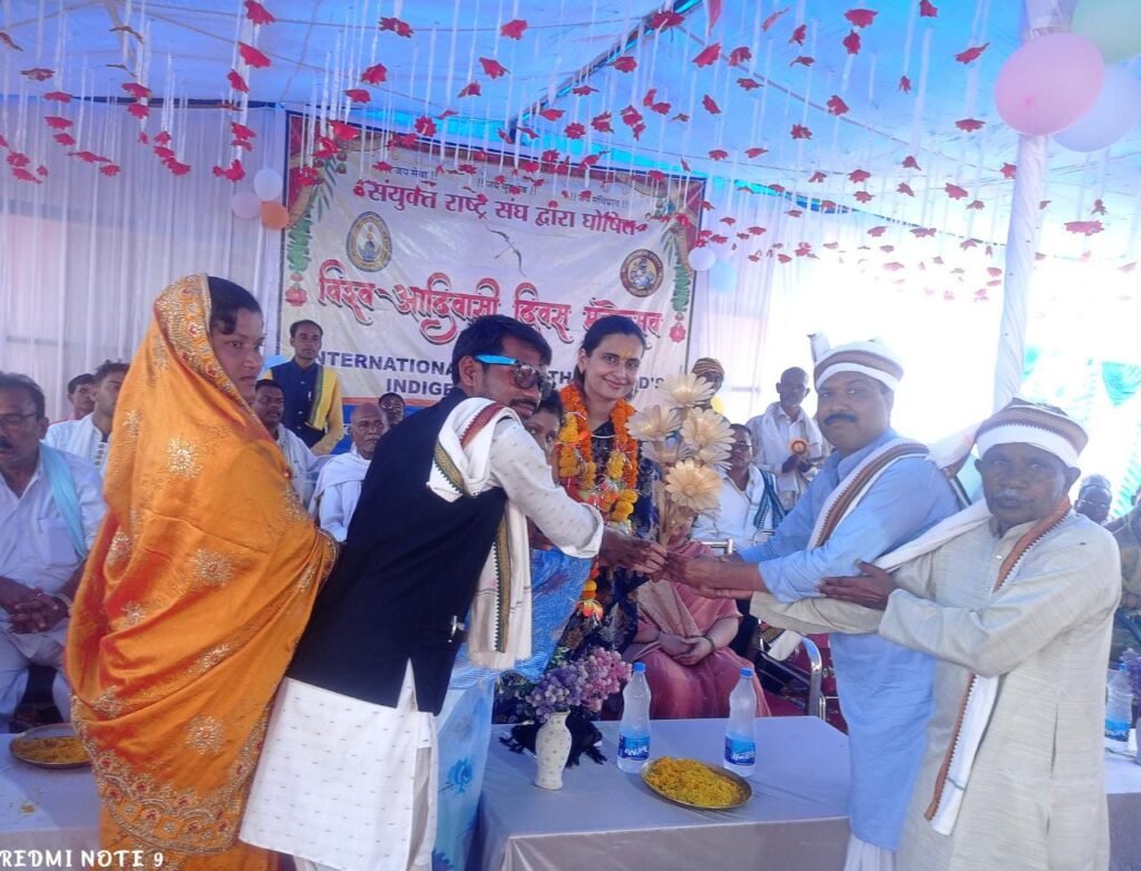 गरियाबंद/छुरा (गंगा प्रकाश)। आदिवासी विकासखंड के ग्राम पाट सिवनी एवं फिंगेश्वरी घाट खाल्हे के आदिवासी समाज द्वारा विश्व आदिवासी दिवस मनाया गया है। कार्यक्रम में मुख्य अतिथि राजिम विधायक अमितेश शुक्ला की बहू प्रियंका शुक्ला थी। अध्यक्षता गरियाबंद जिला कांग्रेस कमेटी अध्यक्ष भाव सिंह साहू ध्रुव गोड समाज के प्रदेश अध्यक्ष पन्नालाल ध्रुव ने की। विशिष्ठ अतिथि अध्यक्ष जिला आदिवासी ध्रुव गोंड समाज पुरन सिंह ठाकुर संरक्षक आदिवासी आमत गोड समाज छुरा शिव दर्शन ध्रुव पार्षद नगर पंचायत छुरा अशोक दीक्षित उपस्थित थे। आदिवासी समाज के लोगों द्वारा अतिथियों का पीला चावल का टीका वह बैच लगाकर जोरदार स्वागत किया गया। अतिथियों द्वारा भगवान बूढ़ादेव डॉक्टर भीमराव अंबेडकर बिरसामुंडा रानी दुर्गावती बूढ़ी माई के छायाचित्र का पूजा अर्चना कर कार्यक्रम की शुरुआत की गई। आदिवासी समाज के युवाओं द्वारा तीर धनुष व पारंपरिक पोशाक पहनकर जोरदार सांस्कृतिक कार्यक्रम प्रस्तुत की गई। इस अवसर पर कार्यक्रम की मुख्य अतिथि प्रियंका शुक्ला ने कहा कि अमितेश शुक्ला जी आपके कार्यक्रम में शामिल होने की बड़ी इच्छा थी। लेकिन जांजगीर चांपा जिले में संभाग स्तरीय सम्मेलन में कांग्रेस पार्टी के राष्ट्रीय अध्यक्ष मल्लिकार्जुन खड़गे का आगमन होने के कारण उन्हें वहां जाना पड़ा। छत्तीसगढ़ में भूपेश बघेल की सरकार ने आदिवासी समाज के लिए जितना कार्य किया है उतना कार्य बीजेपी सरकार ने अपने 15 वर्षों के कार्यकाल में नहीं किया। उन्होंने आदिवासी समाज की मांग पर पाट सिवनी में आदिवासियों समाज भवन निर्माण के लिए 6 लाख रूपए, भुजिया महिला समूह को वेदभुषा के लिए ₹5000, भुजिया समाज के लिए टेंट व बर्तन हेतु ₹5000, गोड़ी कथा सेवा मंडली बाजा सामग्री पार्टी हेतु ₹5000, आदिवासी गुदुम बाजा पार्टी सामग्री हेतु ₹5000 देने की घोषणा की। कार्यक्रम को जिला कांग्रेस कमेटी अध्यक्ष भाव सिंह साहू ने भी संबोधित किया। आदिवासी ध्रुव गोंड समाज की प्रदेश अध्यक्ष पन्नालाल ध्रुव ने कहा कि हम आदिवासी लोग यहां के मूल निवासी हैं। यहां के जल जंगल जमीन परआदिवासियों का अधिकार है। कांग्रेस हमेशा ही आदिवासियों के लिए काम करती है। भूपेश बघेल ने छत्तीसगढ़ में कांग्रेस सरकार आने के बाद आदिवासियों के लिए काफी कम किया है। भाजपा के 15 साल पर कांग्रेस के 5 साल भारी है। आदिवासी कांग्रेस समाज ने प्रियंका शुक्ला को लकड़ी से निर्मित बूढ़ादेव का प्रतीक चिन्ह भेंट कर उनका सम्मान किया। इस अवसर पर कोषाधक्ष्य अध्यक्ष आदिवासी फिंगेश्वर राज बाबूलाल ध्रुव ऑडिटर आदिवासी फिंगेश्वर राज केदार ध्रुव जनपद सदस्य रिखी राम यादव सरपंच पाटसिवनी तमेश्वरी ध्रुव ब्लॉक अध्यक्ष महि