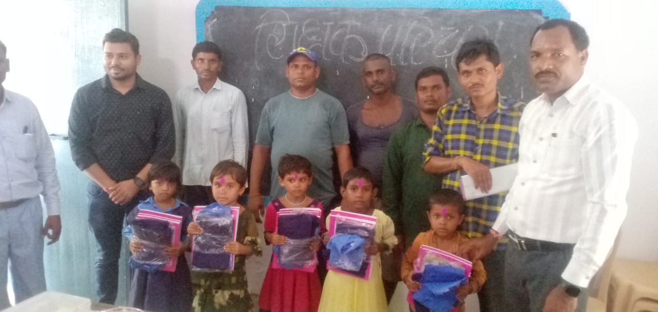 बच्चों को गणवेश वितरण किया गया शाला प्रवेश उत्सव में प्रमुख रूप से उपस्थित थे।