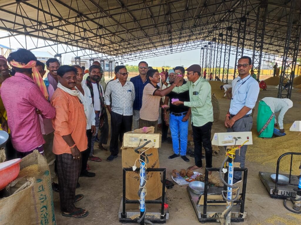 फिंगेश्वर(गंगा प्रकाश)। फिंगेश्वर सहकारी बैंक अन्तर्गत सभी 10 धान खरीदी केन्द्रों बोरसी, फिंगेश्वर, बारूला, बेलर, परसदा, चरौदा, गुण्डरदेही, जामगांव, भसेरा एवं पोलकर्रा में प्रातः 10ः30 बजे से खरीदी कांटा बट एवं प्रथम बिक्री करने वाले कृषक का सम्मान करते हुए धान खरीदी का शुभारंभ किया गया। सहकारी बैंक के सुपरवाइजर टी. आर. साहू ने बताया कि अभी जिन कृषकों का पूछकर ऋण जमा किया जा रहा है। जबकि प्रथम कूपन में ही पूरा धान बिक्री करने वाले किसान का अनिवार्य रूप से ऋण राशि काटकर बाकि राशि उसके बैंक खाते में जमा की जा रही है। सोमवार 6 नवंबर से किसानों को क्रमानुसार बैंक से भुगतान शुरू कर दिया जावेगा। इस बार किसानों से बायोमेट्रिक कि जरिए धान खरीदी करने का निर्देश दिया था। किंतु बायोमेट्रिक की व्यवस्था में कुछ समय लगने के कारण-किसानों से बिना बायोमेट्रिक के धान खरीदना प्रारंभ कर दिया गया है। इसके लिए विभाग ने अनुमति दी है। फिंगेश्वर सहकारी बैंक अन्तर्गत सभी 10 खरीदी केन्द्रों में आज प्रथम दिन कुल 4622.8 क्विंटल धान राशि 1 करोड़ 1 लाख 29 हजार रू. का खरीदा गया। जिसमें 18 लाख 10 हजार रू. कृषकों ने ऋण वसूली खाते में जमा कराया। कृषक ऑनलाईन टोकन निकालकर अपनी पारी अनुसार धान ला रहे है। सहकारी बैंक फिंगेश्वर में एटीएम से भी कृषक अपनी आवश्यकता अनुसार राशि निकाल सकेंगे। बैंक के मैनेजर शेषनारायण पान्डे ने बताया कि सभी 10 केन्द्रों में आज प्रथम बिक्री करने वाले कृषकों का तिलक लगाकर सम्मान किया गया। आज से ही प्रारंभ पोलकर्रा खरीदी केन्द्र में प्रथम कृषक एनप्रसाद साहू ने 14 कट्टा धान 5.60 क्विन्टल राशि 12336 रू. का बेचा। इसी प्रकार लचकेरा खरीदी केन्द्र में कृषक श्रीमती धनीबाई ने प्रथम कृषक के रूप में 53 कट्टा धान 21.20 क्विंटल 32820 रू. का बोरसी खरीदी केन्द्र में प्रथम कृषक कन्हैयालाल ने 11 कट्टा 4.40 क्विंटल राशि 9693 रू. का बेलर में प्रथम कृषक चतुरलाल साहू ने 8 क्विंटल धान 17464 रू. में चरौदा खरीदी केन्द्र प्रथम कृषक लक्ष्मीनारायण ने 9.6 क्विंटल 20956 रू. में फिंगेश्वर खरीदी केन्द्र में किसान अंजोर निषाद ने प्रथम विक्रेता के रूप में 30.4 क्विंटल धान 66363 रू. में बारूला केन्द्र में प्रथम कृषक हरिलाल ने 14 क्विंटल धान 30562 रू. में गुण्डरदेही में प्रथम कृषक तुलाराम ने 11.20 क्विंटल 24449 में एवं परसदाकला में गिरधारी किसान ने 60 कट्टा 24 क्विंटल धान 52392 रू. का धान प्रथम कृषक के रूप में बेचा तथा भसेरा खरीदी केन्द्र में कृषक हेमंत ने प्रथम कृषक के रूप 4.80 क्विंटल धान 70574 रू. में बेचा। इन सभी कृषकों का 10 खरीदी केन्द्र में प्रभारी अधिकारियों ने टीका लगाकर कर स्वागत किया। आचार संहिता के चलते किसी भी जनप्रतिनिधि को आमंत्रण नहीं दिया गया।