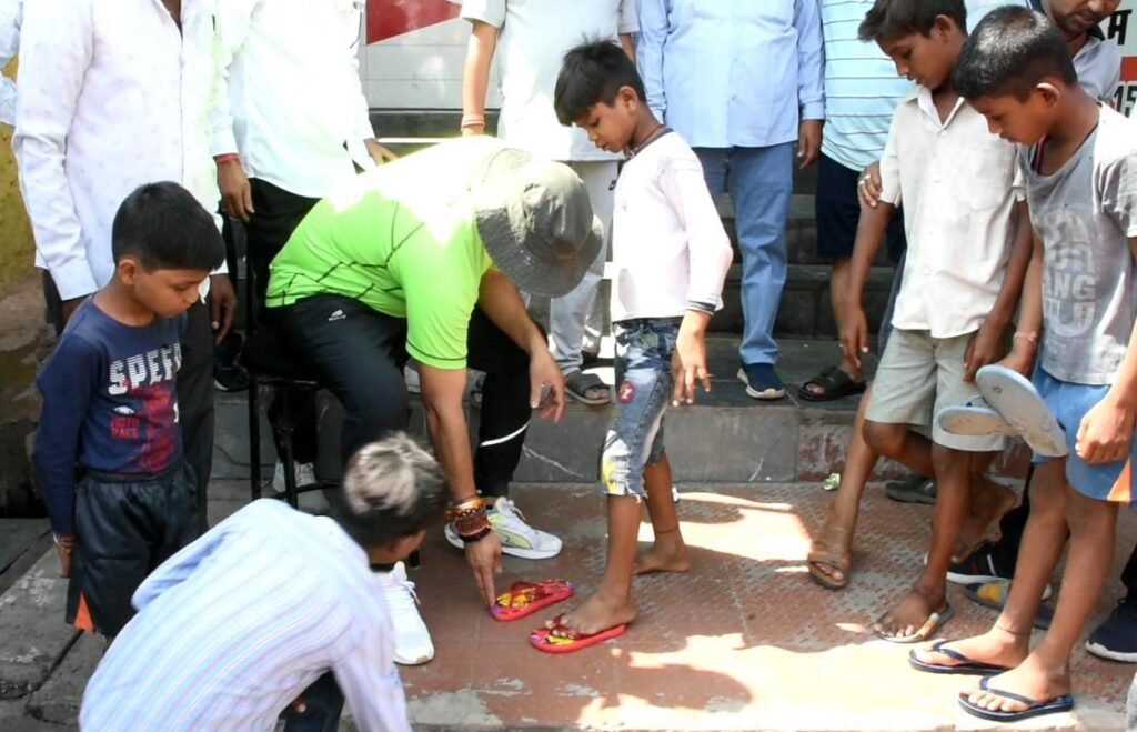 रायपुर (गंगा प्रकाश)। संसदीय सचिव एवं विधायक विकास उपाध्याय आज सरदार वल्लभ भाई पटेल वार्ड क्र.24 के रामनगर, गोकुल नगर, शीतला पारा, सुदामा नगर, झण्डा चौंक भरत नगर एवं संत रामदास वार्ड क्र.25 अन्तर्गत भरत नगर झण्डा चौंक, छोटा रामनगर, भवानी नगर, कृष्णा नगर के रहवासियों से रूबरू होकर उनका हाल-चाल जाना एवं उनसे वार्ड के कार्यों की समीक्षा भी की। इस दौरान उनकी नजर वहाँ खड़े बच्चों पर पड़ी तो उन्होंने देखा कि बच्चे नंगे पांव भरी धूप में वहाँ खड़े थे, यह सब उनसे सहन न हुआ और तत्काल अपने कार्यकर्ताओं को कहकर दुकान से चप्पल खरीदवाये और बच्चों को चप्पल पहनाए।