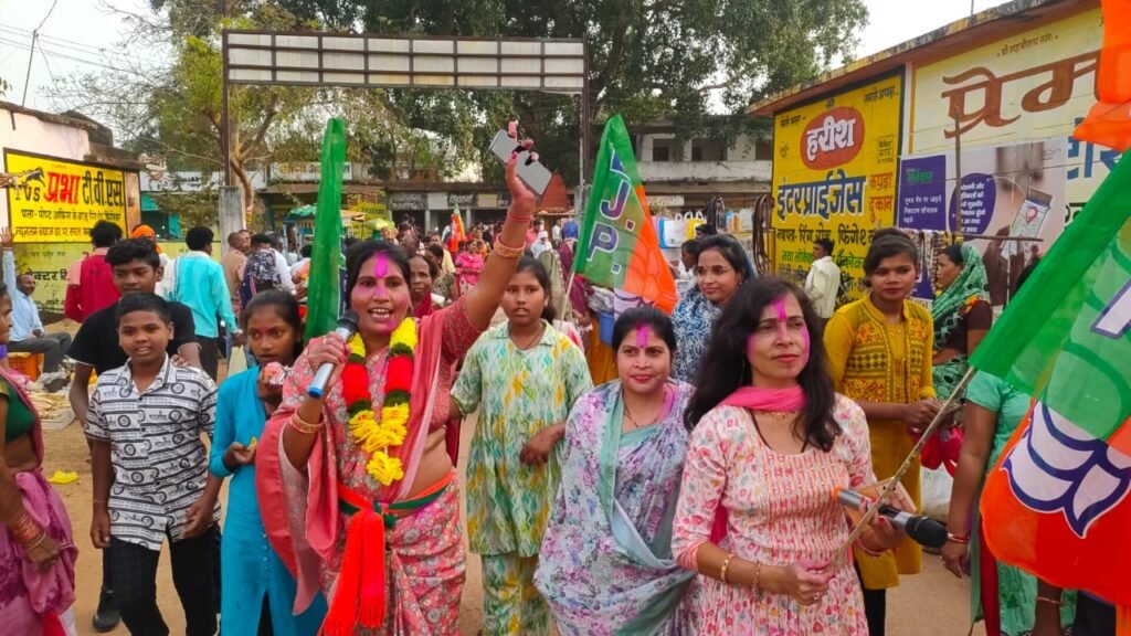 गरियाबंद/फिंगेश्वर (गंगा प्रकाश)। राजिम विधानसभा से भाजपा उम्मीदवार की जीत पर यहां भाजपा कार्यकर्ताओं के साथ नागरिकों, महिलाओं, युवाओं आदि ने जमकर जश्न मनाया। दोपहर में जैसे जैसे राउण्ड पर राउण्ड रोहित साहू के जीत का ग्राफ बढ़ते जाता वैसे वैसे भाजपा चुनाव कार्यालय के सामने भाजपा कार्यकर्ता सहित लोगों का हुजुम लगने लगा। प्रत्येक राउण्ड में बढ़त का समाचार मिलता जाता वैसे वैसे फटाखें, गुलाल की फुहार एवं जयघोष के नारे की बुलंदी बढ़ती जाती। दोपहर लगभग 3 बजे जैसे ही भाजपा उम्मीदवार रोहित साहू की 11903 वोटों से विजयी का समाचार मिला वैसे ही फिंगेश्वर के भाजपा चुनाव कार्यालय सहित पुराना बस स्टैण्ड, नया बस स्टैण्ड, शिवाजी चौक, रानी श्यामकुमारी चौक, महावीर यादव के दुकान के सामने होली-दीवाली जैसा माहौल हो गया। कोई फटाका फोड़ रहा था, कोई गुलाल लगा रहा था माला पहना रहा था और अनेक महिला कार्यकर्ता तो लोगों को मिठाई खिलाकर जीत की खुशी का इजहार कर रहे थे। फिंगेश्वर का पूरा माहौल भाजपा मय हो गया । लोग घुम घुमकर एक दूसरे को बधाई दे रहे थे। महिलाओं की एक जोरदार विजयी रैली भाजपा नेत्री संतोषी श्रीवास्तव, सीमा ठाकुर, शांति कोसरे, पद्मा यदु, भुनेश्वरी साहू, अनिता शर्मा, लक्ष्मी श्रीवास्तव,रोशन देवांगन, पन्नालाल बंजारे आदि के मार्गदर्शन एवं उपस्थिति में नगर में निकाली गई। जिसमें काफी संख्या में भाजपा कार्यकर्ता कमल छाप का झंडा लिए उत्साह के साथ नारा लगा रहे थे।