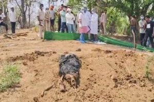 जब वन विभाग और पशु चिकित्सा विभाग की संयुक्त टीम ने शव को बाहर निकाला, तो सच्चाई का ऐसा भयावह चेहरा दिखा जिसने हर किसी के रोंगटे खड़े कर दिए। केवल 1 फीट खुदाई करने पर भालू के चारों पंजे अलग-अलग पड़े मिले और 3 फीट नीचे रस्सी से बंधा शरीर सड़-गल चुका था। सबसे बड़ा सवाल यही है-