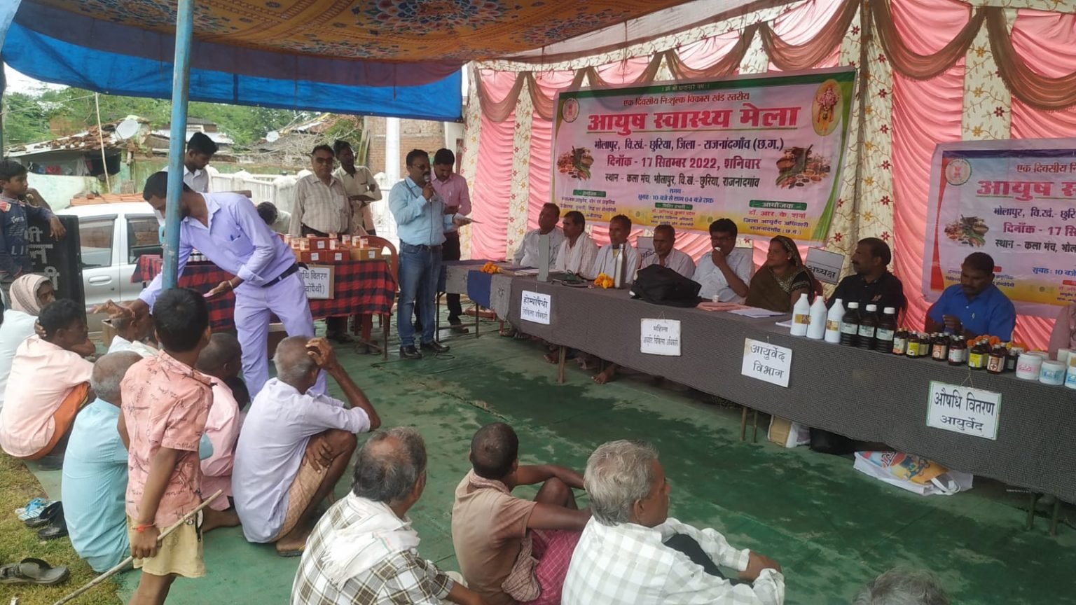 राजनांदगांव(गंगा प्रकाश)।-सदस्य सचिव कार्यकारी समिति, राज्य आयुष सोसायटी एवं संचालक आयुर्वेद , योग एवं प्राकृतिक चिकित्सा, यूनानी, सिद्ध एवं होम्योपैथी (आयुष) छत्तीसगढ़ रायपुर के निर्देशन एवं जिला आयुर्वेद अधिकारी राजनांदगांव के कुशल मार्गदर्शन में 17/09/2022, दिन-शनिवार को एक दिवसीय विकासखंड स्तरीय आयुष स्वास्थ्य मेला जिसमें निःशुल्क रोग निदान एवं आयुर्वेद / होम्योपैथी चिकित्सा शिविर का आयोजन एवं रोगप्रतिरोधक क्षमता बढ़ाने हेतु आयुष काढ़ा का वितरण, ग्राम पंचायत भोलापुर, विकासखंड-छुरिया, ज़िला-राजनांदगाँव (छ ग) में किया गया तथा यहां अनुभवी एवं योग्य चिकित्सकों द्वारा वातरोग उदररोग स्त्रीरोग चर्मरोग सहित अन्य सभी प्रकार के जटिल रोगों का आयुर्वेद एवं होम्योपैथी चिकित्सा पद्धति द्वारा निदान कर निःशुल्क औषधि का वितरण शिविर प्रभारी डॉक्टर अनिरुद्ध कुमार पटेल के नेतृत्व में किया गया । शिविर का शुभारंभ जनपद सदस्य माननीया श्रीमती हेमलता बंजारे की उपस्थित में भगवान धन्वंतरि की पूजा अर्चना कर हुआ । कार्यक्रम अध्यक्ष श्रीमती हेमलता बंजारे, रूखम प्रसाद पांडे (ग्राम सरपंच), महेन्द्र साहू, देवधर सिन्हा, शिशुपाल साहू(वरिष्ठ पत्रकार), पोखन साहू, दुकालु साहू, भागचंद धृतलहरे, हेमलाल साहू, ललित साहू, एवं समस्त ग्राम पंचगण, एवं ग्राम वासियों की गरिमामयी उपस्थिति में सफलतापूर्वक सम्पन्न हुआ । इस शिविर में कुल 632 मरीज़ों का स्वास्थ्य परीक्षण कर निःशुल्क आयुर्वेद औषध प्रदान किया गया साथ ही बी पी, जाँच किया गया । इस शिविर में चिकित्सक डॉ अनिरुद्ध पटेल, डॉ मो. इकबाल हुसैन, डॉ योगेश्वरी ठाकुर, डॉ आलोक कलचुरी, फ़ार्मासिस्ट सरोज लता देवांगन, नरेश कुमार साहू, हीरालाल सोनबोईर, छगनलाल मालेकर, औषधालय सेवक गौतम कुमार घरडे, दीपक कोर्राम, लक्ष्मी नारायण नेताम, हर्षराज सिन्हा, तेजपाल यादव, शंकर लाल कवर आदि ने अपनी सेवाए दी