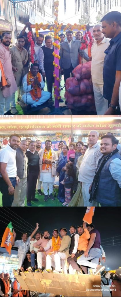 गरियाबंद/फिंगेश्वर (गंगा प्रकाश)। नवनिर्वाचित विधायक रोहित साहू का आज विजयी होकर विधायक बनने उपरांत पर प्रथम नगर आगमन पर शानदार पूरे उत्साह-उमंग एवं जोश के साथ जगह जगह स्वागत किया गया। विधायक का विजय जुलुस दोपहर 4ः30 बजे कृषि उपज मंडी प्रांगण से रावत नाचा, पंथी नृत्य एवं ढोल-बाजा के साथ निकाला गया। प्रारंभ में मंडी गेट से अटल चौक तक युवाओं, महिलाओं, भाजपाईयों ने श्री साहू को फुलमाला से लाद दिया। लोग अपने घरों के सामने श्रीफल भेंटकर, माला पहनाकर, मिठाई खिलाकर विधायक के स्वागत में पील पड़ रहे थे। अटल चौक में विधायक रोहित साहू ने आरती उतारकर पूजा अर्चनाकर आज पूर्व प्रधानमंत्री अटल बिहारी वाजपेयी को अपने श्रद्धा सुमन अर्पित किए। यहॉ से नया बस स्टैण्ड, शिवाजी चौक होते हुए विधायक की स्वागत रैली श्री विद्यासागर बर्तन भंडार पहूंची जहां पहाड़िया परिवार ने काफी साज सज्जा युक्त मंच पर श्री साहू का तिलक लगाकर, श्रीफल भेंटकर, शाल उढ़ाकर स्वागत करते हुए रोहित साहू को धान के कटोरा छत्तीसगढ़ के धान एवं नारियल के साथ अलग अलग तौलकर सम्मान किया। विजय जुलुस के साथ चल रहे हुजुम ने यहॉ जमकर नारेबाजी करते हुए खुशियॉ मनाई। यहां से विजय जुलुस मुख्य मार्ग में राजू साहू, महावीर यादव, रोशन देवांगन, धरमवीर यादव, भरत बंगानी, बसंत गुप्ता, विमल पगारिया, संतोष थदानी के निवास से स्वागत-अभिनंदन करते हुए रैली नगर के हृदय स्थल शहीद स्मारक चौक पहुंची जहां नगर की भाजपा नेत्रियॉ, महिला मंडल एवं रचनात्मक कार्यो से जुड़ी महिलाओं ने विधायक का जोरदार स्वागत किया। यहॉ रोहित साहू शहीद स्मारक चौक में उतरकर नमन किया। शहीद स्मारक चौक महल रोड, पंचमंदिर, बालाजी मंदिर होते हुए विजय रैली मॉ मौली माता मंदिर पहूंची। सभी मंदिरों में नवनिर्वाचित विधायक रोहित साहू ने मत्था टेकते हुए अंचलवासियों, नगरवासियों के सुख समृद्धि की कामना की। पूरे रास्ते नागरिकों ने श्री साहू का माला पहनाकर शानदार स्वागत किया। विजयी रैली मौलीपारा, हल्बापारा होते हुए चंद्रशेखर हरित, मनीष हरित के निवास पर जोरदार स्वागत के बाद घासीदास मंदिर पहुंची जहां सतनामी समाज के नागरिकों ने श्री साहू का परंपरागत स्वागत किया। विधायक ने मंदिर में गुरू घासीदास के समक्ष मत्थ टेककर आशीर्वाद लिया। घासीदास मंदिर के बाद स्वागत एवं आभार रैली पुराना बस स्टैण्ड पहुंची। जहां सर्वप्रथम व्यापारी संघ द्वारा धान में तौलकर विधायक का शानदार स्वागत किया। इस अवसर पर पुराना बस स्टैण्ड में शानदार स्वागत मंच बनाया गया था। जहां पहुंचने पर जयघोष के गुंजायमान नारों के साथ नवनिर्वाचित विधायक रोहित साहू का नागरिकों, भाजपा कार्यकर्ताओं, महिलाओं, युवाओं आदि अनेक समाज प्रमुखों द्व