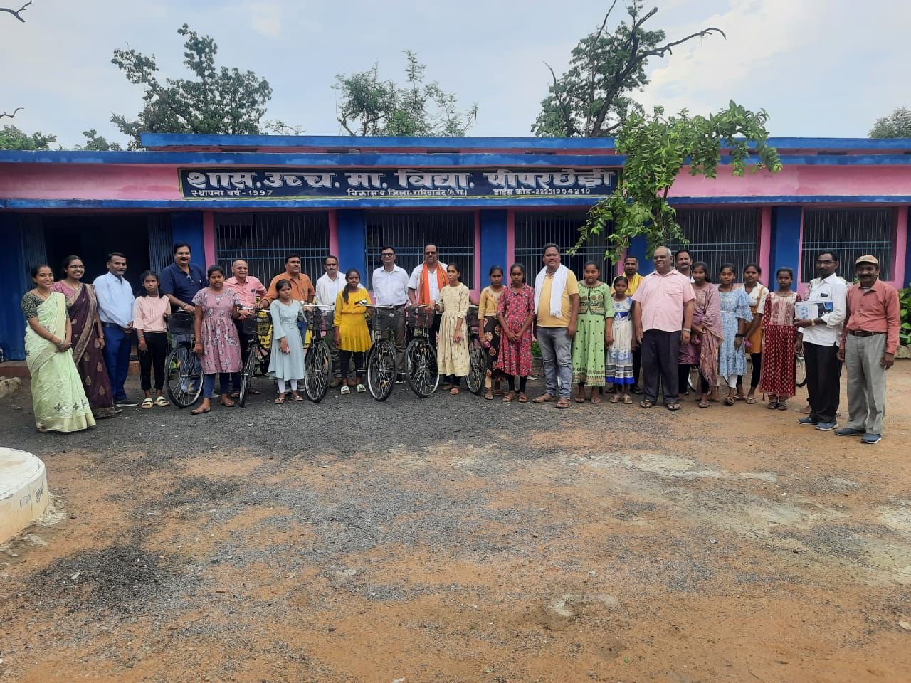 गरियाबंद (गंगा प्रकाश)। शासकीय उच्चतर माध्यमिक विद्यालय पीपरछेड़ी, विकासखंड व जिला गरियाबंद शाला प्रवेश उत्सव का कार्यक्रम में बच्चों का स्वागत गुलाल लगाकर, मिठाई खिलाकर मनाया गया। जिसमे कार्यक्रम में उपस्थित वरिष्ठ जन प्रतिनिधि ईश्वर वर्मा, शाला विकास समिति सदस्य अश्वनी वर्मा, ग्राम के प्रथम नागरिक गैंदलाल दीवान , प्राचार्य बसंत त्रिवेदी द्वारा कक्षा 9 वी और 10 वी के छात्र छात्राओं को किताबो का वितरण एवम् शासन की महती योजना सरस्वती साइकिल योजनानुसार कक्षा 9वी के अनुसूचित जाति, जनजाति व पिछड़े वर्ग के छात्राओं को साइकिल वितरण किया गया। इस कार्यक्रम में पालकों के साथ साथ विद्यालय से वरिष्ठ व्याख्याता कामता प्रसाद साहू, वीरेंद्र सिन्हा, दिनेश निर्मलकर, किरण दीवान, हरि नारायण यादव, दीपक गवली, रवि प्रकाश अंगारे, डॉ. ओमप्रकाश वर्मा, श्रीमती नूतन साहू, श्रीमती योगेश्वरी यादव, हेमंत कुमार दाऊ, सूरज महडिक सहित अन्य कर्मचारी हितेंद्र सिन्हा ,पुरषोत्तम ध्रुव , टेकराम की उपस्थिति रही। कार्यक्रम में बच्चों को हर्ष व्याप्त था, साइकल पाकर विद्यार्थियों में खुशी की लहर जाग उठी। अपने संबोधन में उपस्थित ईश्वर वर्मा ने इस योजना के बारे में बच्चों को समझाया और इसके लिए शासन को इस मंच के माध्यम से धन्यवाद दिया। उपस्थित सदस्य अश्वनी वर्मा , सरपंच गैंदलाल दीवान ने भी कहा कि ये योजना एक ऐसी महत्वाकांक्षी योजना है जो ना सिर्फ बेटियों को स्कूल आने-जाने में मदद करती है बल्कि बेटियों की शिक्षा की राह आसान करती है। विद्यालय के प्राचार्य बसंत त्रिवेदी ने अपने आशीर्वचन उद्बोधन में इस कार्यक्रम की भूरी भूरी प्रशंसा की और शासन को धन्यवाद करते बच्चों को रोज विद्यालय आने व पढ़ाई पर विशेष ध्यान देने में जोर दिया गया ।