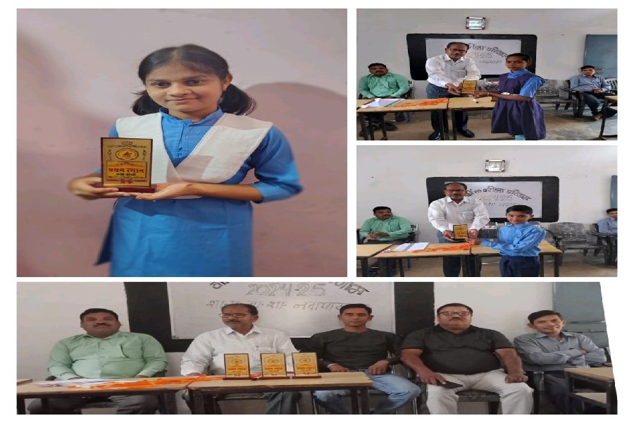शासकीय पूर्व माध्यमिक शाला नवापारा कोसमी में सत्र 2024-25 का परिणाम घोषित, मेधावी छात्रों को मिला शील्ड और मेडल।
