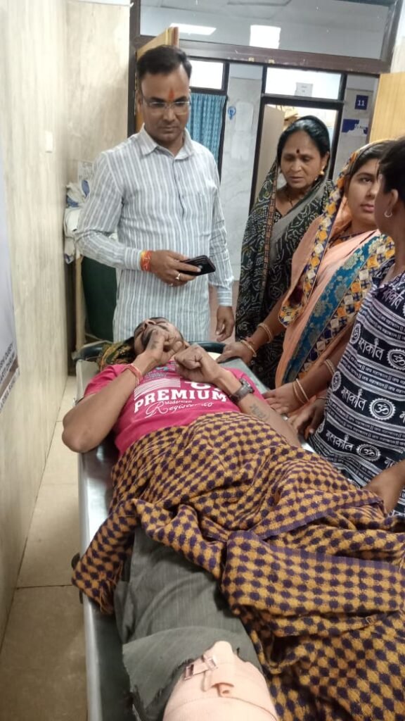 सडक दुर्घटना मे घायल के मदद के लिए जिला चिकित्सालय पहुँचे जिला महामंत्री चुम्मन साहू