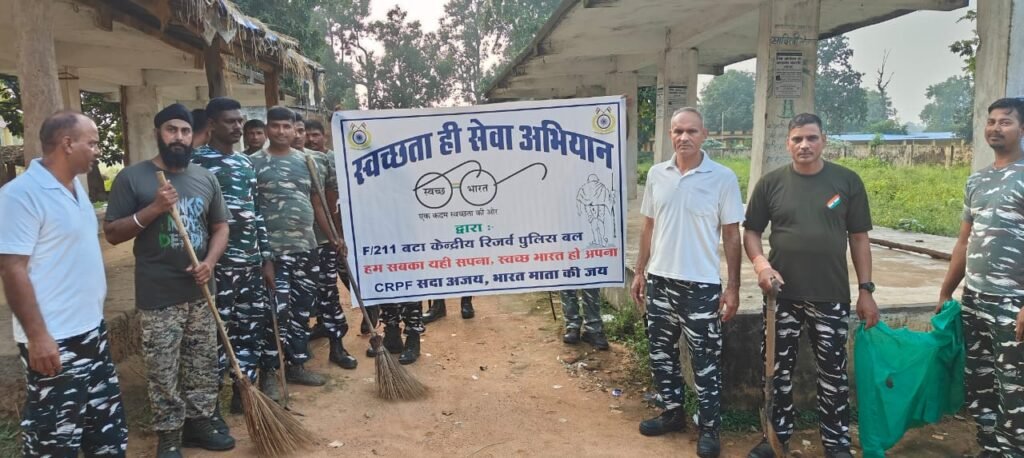 दर्रीपारा (गंगा प्रकाश)। स्वच्छता भारत अभियान के तहत 1 अक्टूबर को जहाँ बाजार लगता हैं उसके आसपास एवं उच्चतर माध्यमिक विद्यालय परिसर दर्रीपारा में सफाई अभियान चलाया गया। इस दौरान सीआरपीएफ /211 वीं बटालियन केंद्रीय रिर्जव पुलिस बल दर्रीपारा के अधिकारी सहित पुलिस कैप के सभी जवान मौजूद थे। सहायक कमाडेंट बोना राम,निरीक्षक सुनील कुमार की अगुवाई में सी आर पी एफ के जवानों द्वारा स्वच्छता अभियान चलाया गया।