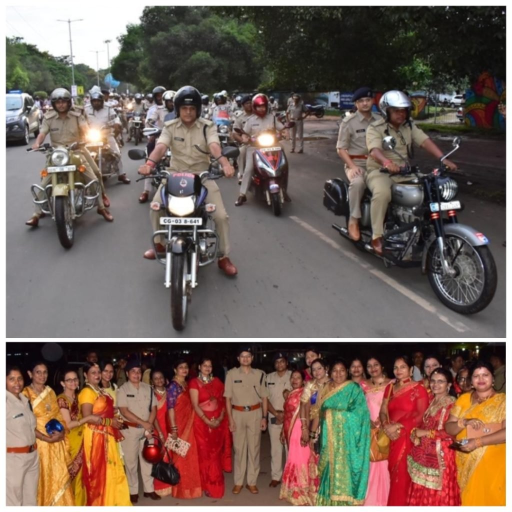 दुर्ग(गंगा प्रकाश)। विजुअल पुलिसिंग के अंतर्गत पुलिस अधीक्षक दुर्ग के नेतृत्व में भिलाई शहर में बाइक पेट्रोलिंग की गई। राजपत्रित अधिकारियों एवं 200 से अधिक जवानों ने 100 से अधिक बाइक पर पेट्रोलिंग की। शहर के समस्त चौक चौराहों, पार्को ने नशा करने वालों एवं अड्डे बाजो, स्पीड बाइकिंग, अपराधिक तत्वों पर लगाम लगाने के लिए शहर में बाइक पेट्रोलिंग की गई। सिविक सेंटर में तीज सम्मेलन में उपस्थित महिलाओं के द्वारा पुलिस अधीक्षक दुर्ग के अभियान को “महिला सुरक्षा के संबंध में” एक अच्छी पहल बताया।