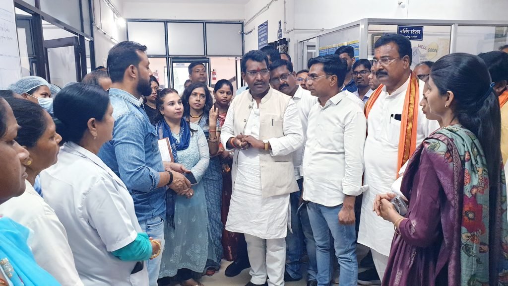 फिंगेश्वरः-आज राजिम विधायक रोहित साहू ने क्षेत्र के राजिम व फिंगेश्वर के स्वास्थ्य केंद्रों का निरीक्षण कर स्वास्थ्य सुविधाओं का जायजा लिया। उपस्थित डॉक्टर्स एवं स्वास्थ्य अधिकारियों से जनता को हर सुविधा प्रदान करते हुए अपनी ड्यूटी समय पर पूरी ईमानदारी से करने निर्देश दिया, आमजन से बिना भेदभाव के अच्छे व्यवहार से कार्य करने कहा साथ ही उपस्थित हास्पिटल स्टाफ से भी चर्चा कर समस्या एवम् उनके निदान पर भी त्वरित कार्यवाही के निर्देश सीएमएचओ व बीएमओ को दिए। विधायक रोहित साहू की सजगता पर जनता काफी उत्साह है उनके इस कार्य का नगर में काफी प्रशंसा हो रही है, स्थानीय और अनुभवी जनप्रतिनिधि होने का लाभ जनता को सीधा सीधा मिल रहा है, आने वाले समय में निश्चित रूप से स्वास्थ्य सुविधाएं और सुदृढ़ होगी, इसका उदाहरण हाल ही में स्वास्थ्य मंत्री के प्रवास के दौरान विधायक रोहित साहू के प्रयास से गरियाबंद जिला को 5 नए डाक्टर व दो विशेषज्ञ के साथ 7 नए डॉक्टर्स की स्वीकृति मिली है। इस अवसर पर नगर पंचायत अध्यक्ष, वरिष्ठ नेता भागवत हरित, मंडल अध्यक्ष कमल सिन्हा, जिला किसान मोर्चा अध्यक्ष मनीष हरित, युवा मोर्चा जिला उपाध्यक्ष राजू साहू, साहू समाज के भुनेश्वर साहू, लालाराम साहू, जिला पंचायत सदस्य मधुबाला रात्रे, संतोषी श्रीवास्तव, लक्ष्मी श्रीवास्तव, बोधन साहू, भुवन साहू उपस्थित रहे।