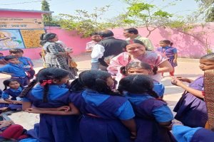 विद्यालय पहूंच के छात्र छात्राओं को गुलाल से रंगो – रंग में सराबोर के साथ चाकलेट बांट कर होली पर्व की शुभकामनाएं दी