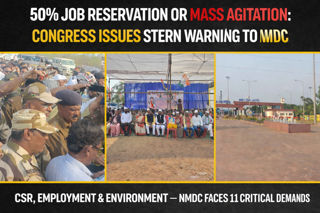 рдХрд╛рдВрдЧреНрд░реЗрд╕ рдиреЗрддрд╛рдУрдВ рдиреЗ рдЧреНрд░рд╛рдореАрдгреЛрдВ рдХреА рд╢рд┐рдХрд╛рдпрддреЛрдВ рдХрд╛ рд╣рд╡рд╛рд▓рд╛ рджреЗрддреЗ рд╣реБрдП рдХрд╣рд╛ рдХрд┐ рдПрдирдПрдордбреАрд╕реА рдЦрдирди рдФрд░ рд╕реНрдЯреАрд▓ рдкреНрд▓рд╛рдВрдЯ рд╕реЗ рдирд┐рдХрд▓рдиреЗ рд╡рд╛рд▓рд╛ рджреВрд╖рд┐рдд рд▓рд╛рд▓ рдкрд╛рдиреА рдФрд░ рдЕрдкрд╢рд┐рд╖реНрдЯ рдирдЧрд░рдирд╛рд░ рдПрд╡рдВ рдЖрд╕рдкрд╛рд╕ рдХреЗ рдЧрд╛рдВрд╡реЛрдВ рдХреА рдирджрд┐рдпреЛрдВ рдФрд░ рдЦреЗрддреЛрдВ рдореЗрдВ рдорд┐рд▓ рд░рд╣рд╛ рд╣реИ, рдЬрд┐рд╕рд╕реЗ рдЦреЗрддреА, рдорд┐рдЯреНрдЯреА рдФрд░ рдкрд░реНрдпрд╛рд╡рд░рдг рдХреЛ рдЧрдВрднреАрд░ рдиреБрдХрд╕рд╛рди рд╣реЛ рд░рд╣рд╛ рд╣реИред рдПрдирдПрдордбреАрд╕реА рдХреЗ тАЬрдЬреАрд░реЛ рдбрд┐рд╕реНрдЪрд╛рд░реНрдЬтАЭ рджрд╛рд╡реЗ рдЬрдореАрдиреА рд╕реНрддрд░ рдкрд░ рдЦреЛрдЦрд▓реЗ рд╕рд╛рдмрд┐рдд рд╣реЛ рд░рд╣реЗ рд╣реИрдВред