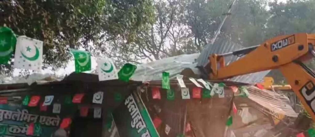 Administrative Action शिवरीनारायण, जांजगीर-चांपा | 15 अक्टूबर 2025| नगर पंचायत शिवरीनारायण में मंगलवार को प्रशासन ने एक बड़ी कार्रवाई करते हुए बस स्टैंड के पास स्थित मदरसा और गौ औषधालय को बुलडोजर चलाकर हटाया। बताया जा रहा है कि ये दोनों संस्थान वर्षों से सरकारी जमीन पर संचालित हो रहे थे। प्रशासन ने इस भूमि पर शॉपिंग कॉम्प्लेक्स निर्माण की योजना के तहत यह कदम उठाया।