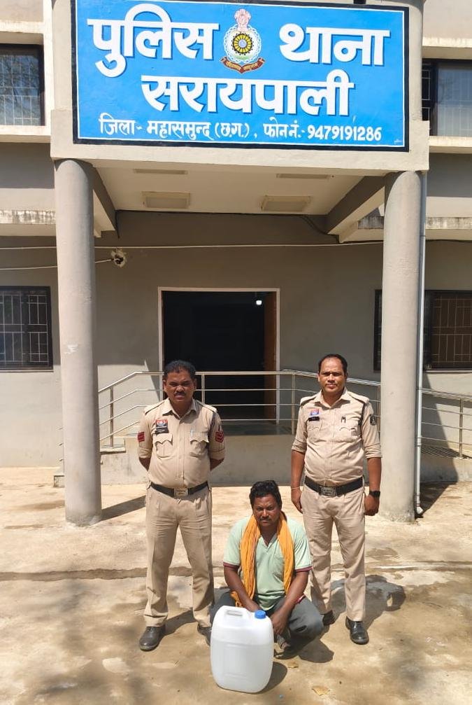 थाना सरायपाली: दो अलग-अलग प्रकरणों में कार्रवाई करते हुए पुलिस ने मनबोध चौहान (46 वर्ष) निवासी आंवला चक्का तथा शैलेन्द्र दास (45 वर्ष) निवासी विवातीपाली को गिरफ्तार किया। इनके कब्जे से कुल 37 लीटर 800 एमएल महुआ एवं देशी प्लेन शराब जब्त की गई, जिसकी कीमत 8000 रुपये है।