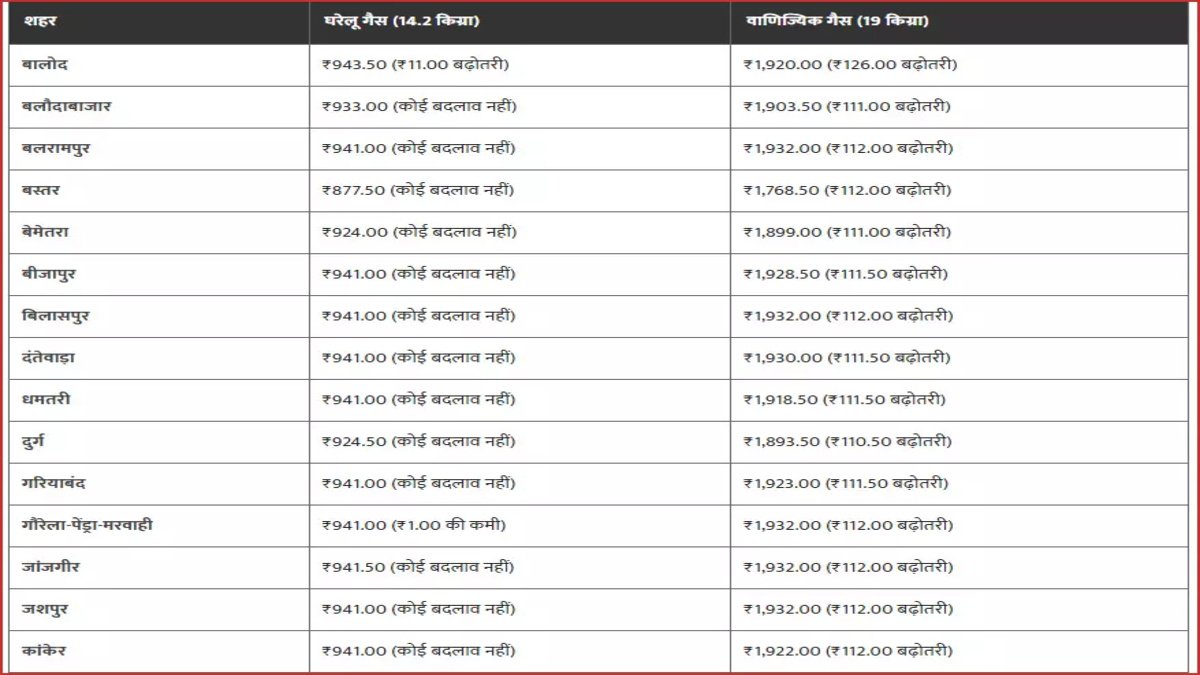 हर महीने की तरह तेल कंपनियों ने घरेलू एलपीजी सिलेंडर के ताजा रेट अपडेट किए हैं। रायपुर समेत छत्तीसगढ़ के प्रमुख शहरों में नई दरें लागू हो गई हैं। बढ़ी हुई कीमतों के पीछे अंतरराष्ट्रीय बाजार में कच्चे तेल की कीमतों में उतार-चढ़ाव और डॉलर-रुपया विनिमय दर में बदलाव को प्रमुख कारण माना जा रहा है।