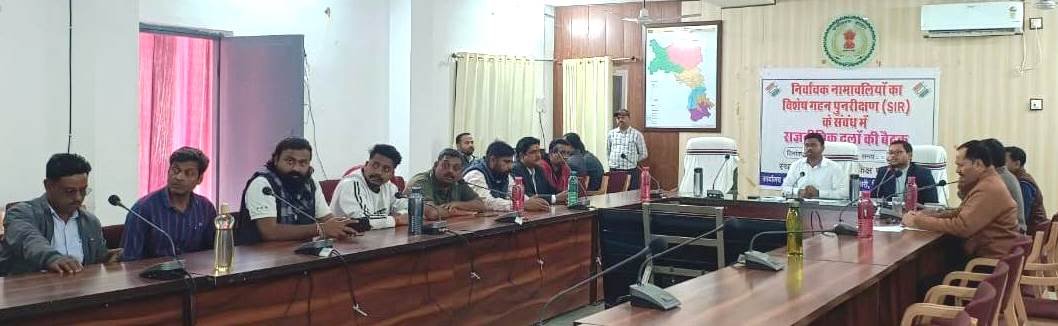 एमसीबी(गंगा प्रकाश)। भारत निर्वाचन आयोग के निर्देशानुसार निर्वाचन नामावली के विशेष गहन पुनरीक्षण कार्यक्रम के तहत आज कलेक्ट्रेट सभाकक्ष में पंजीकृत राजनीतिक दलों की महत्वपूर्ण बैठक आयोजित हुई। बैठक की अध्यक्षता कलेक्टर एवं जिला निर्वाचन अधिकारी डी. राहुल वेंकट ने की, जबकि अपर कलेक्टर एवं उप जिला निर्वाचन अधिकारी अनिल कुमार सिदार ने संचालन एवं मार्गदर्शन प्रदान किया। बैठक में 01 जनवरी 2026 की संदर्भ तिथि पर आधारित विशेष पुनरीक्षण (SIR) की प्रगति से सभी प्रतिनिधियों को अवगत कराया गया तथा राजनीतिक दलों से आग्रह किया गया कि वे शीघ्र बूथ लेवल एजेंट (बीएलए) की नियुक्ति कर सूची उपलब्ध कराएं, ताकि पुनरीक्षण कार्य सुचारू रूप से आगे बढ़ सके।