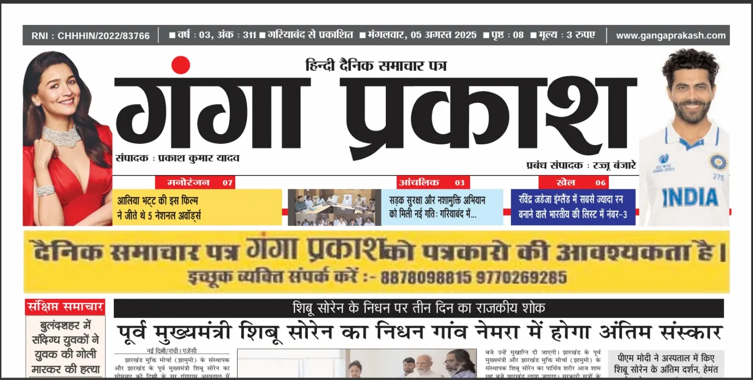 गंगा प्रकाश छत्तीसगढ के गरियाबंद जिले छुरा(न.प.) से दैनिक समाचार पत्रिका/वेब पोर्टल है। गंगा प्रकाश का उद्देश्य सच्ची खबरों को पाठकों तक पहुंचाने का है। जिसके लिए अनुभवी संवाददाताओं की टीम हमारे साथ जुड़कर कार्य कर रही है। समाचार पत्र/वेब पोर्टल में प्रकाशित समाचार, लेख, विज्ञापन संवाददाताओं द्वारा लिखी कलम व संकलन कर्ता के है। इसके लिए प्रकाशक, मुद्रक, स्वामी, संपादक की कोई जवाबदारी नहीं है। न्यायिक क्षेत्र गरियाबंद जिला है।