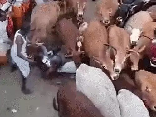 गोवर्धन पूजा के दिन सिरहा के ऊपर से गुजरते हुए गोवंश का यह नजारा दर्शाता है कि ग्रामीण अपने देव-पूजक रीति-रिवाजों को कितनी श्रद्धा से मानते हैं।