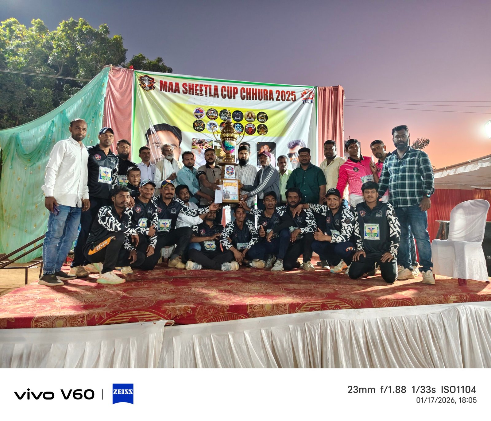 माँ शीतला क्रिकेट टूर्नामेंट के समापन अवसर पर पुरस्कार वितरण करते समय जिन गणमान्य अतिथियों की मंच पर विशेष उपस्थिति रही, उनमें प्रमुख रूप से —हेमचंद देवांगन (संचालक, छत्तीसगढ़ संकल्प हॉस्पिटल), रंजन सिंह ध्रुव (सब-इंस्पेक्टर अंकुश ध्रुव के पिता),पार्षद हरीश यादव,पार्षद पंचराम टंडन,जितेंद्र ध्रुव (भूतपूर्व पार्षद),नियाज खान तथा आयोजन समिति के अन्य सदस्य एवं स्थानीय गणमान्य नागरिक उपस्थित रहे।