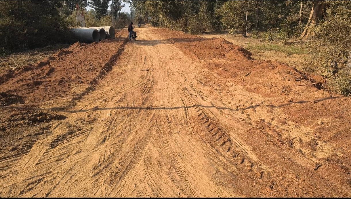 यह सड़क जिला मुख्यालय से लगभग 10 किलोमीटर दूर जंगल के बीचोबीच बनाई जा रही है। शासन ने इसके लिए 1 करोड़ 11 लाख 40 हजार रुपये की लागत स्वीकृत की है। कार्य प्रारंभ की तिथि 18 जनवरी 2025 तय की गई थी और पूर्णता की समय-सीमा 18 जनवरी 2026 निर्धारित है। लेकिन लगभग एक वर्ष बीत जाने के बावजूद सड़क का काम आधा भी पूरा नहीं हो पाया है। अब तक केवल करीब ढाई किलोमीटर हिस्से में मिट्टी और मुरम डालने का कार्य हुआ है। न तो गिट्टी का काम पूरी तरह शुरू हुआ है और न ही डामरीकरण की प्रक्रिया।