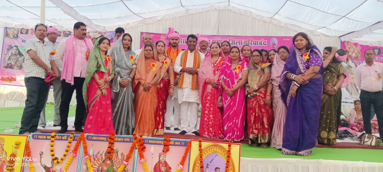 छुरा/गरियाबंद(गंगा प्रकाश)। कलार समाज जिला गरियाबंद द्वारा भगवान सहस्त्रबाहु अर्जुन देव जयंती का भव्य आयोजन छुरा के मिनी स्टेडियम में श्रद्धा और उत्साह के साथ संपन्न हुआ। कार्यक्रम का शुभारंभ भगवान सहस्त्रबाहु अर्जुन देव की विधिविधान से पूजा-अर्चना के साथ हुआ। तत्पश्चात माताओं-बहनों द्वारा भव्य कलश यात्रा निकाली गई, जिसका नगर के प्रमुख चौक-चौराहों पर युवाओं द्वारा पुष्प वर्षा कर आत्मीय स्वागत किया गया।