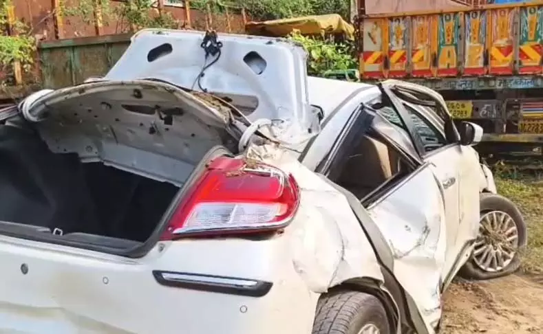Road Accident महासमुंद, छत्तीसगढ़ | 8 अक्टूबर 2025: नेशनल हाईवे 53 पर जामपाली के पास मंगलवार को एक भीषण सड़क हादसा हुआ, जिसमें एक ही परिवार के तीन सदस्यों की दर्दनाक मौत हो गई और दो अन्य गंभीर रूप से घायल हो गए। हादसा उस वक्त हुआ जब एक स्विफ्ट डिजायर कार (JH 10 CJ 1511), चंद्रपुर से झारखंड के धनबाद लौट रही थी। अचानक सड़क पर मवेशी आ जाने से ड्राइवर ने गाड़ी बचाने की कोशिश की, जिससे कार अनियंत्रित होकर पलट गई।